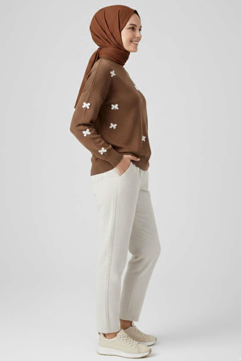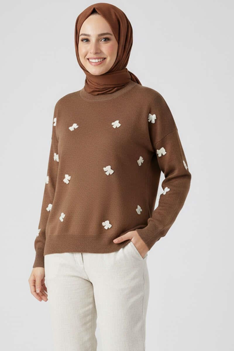 Bow Embroidered Knit Sweater Latte (6999-3252-676989)