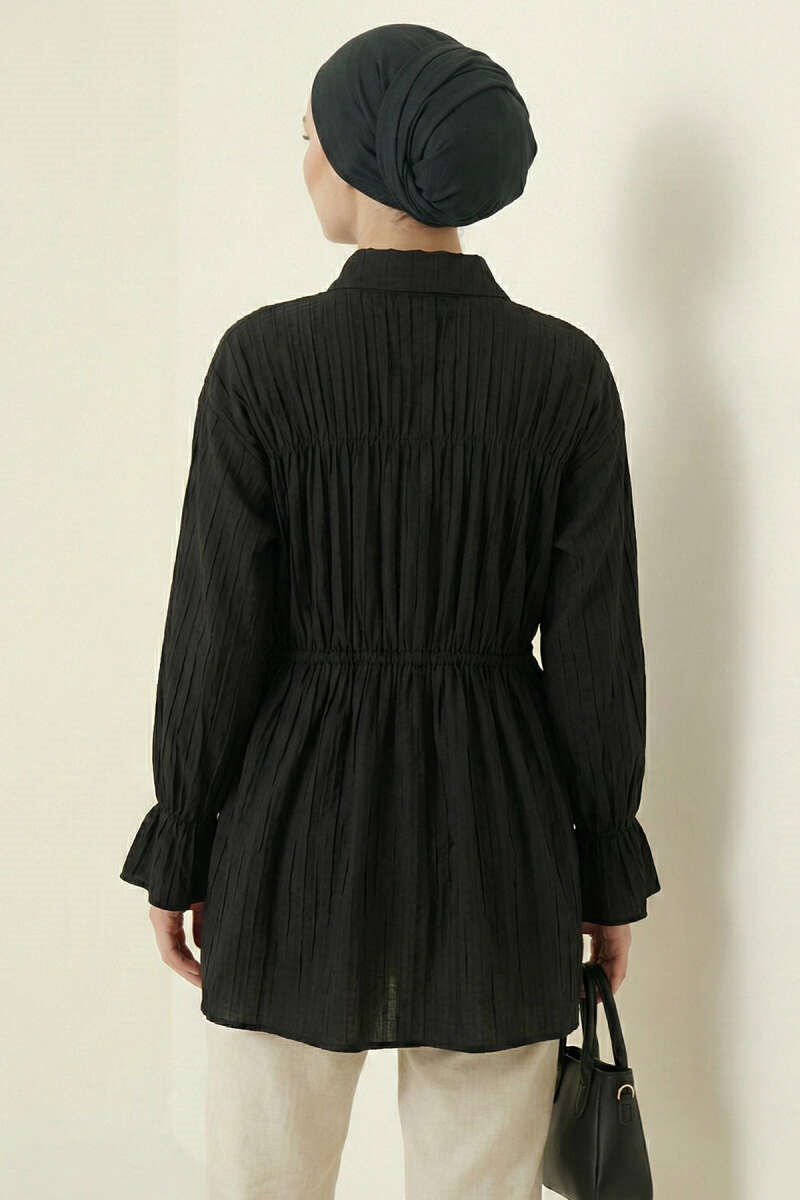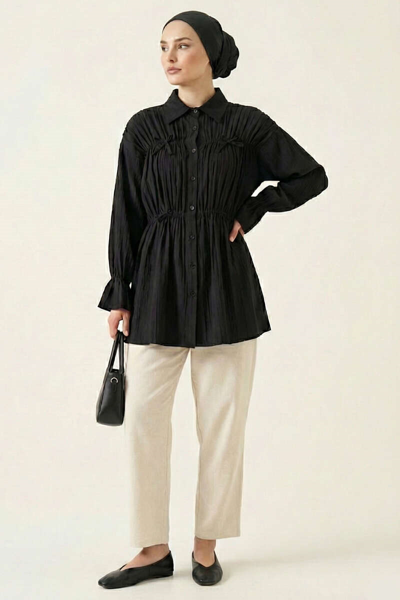 Black Elasticated Shirt with Bow (0674-840-725145)