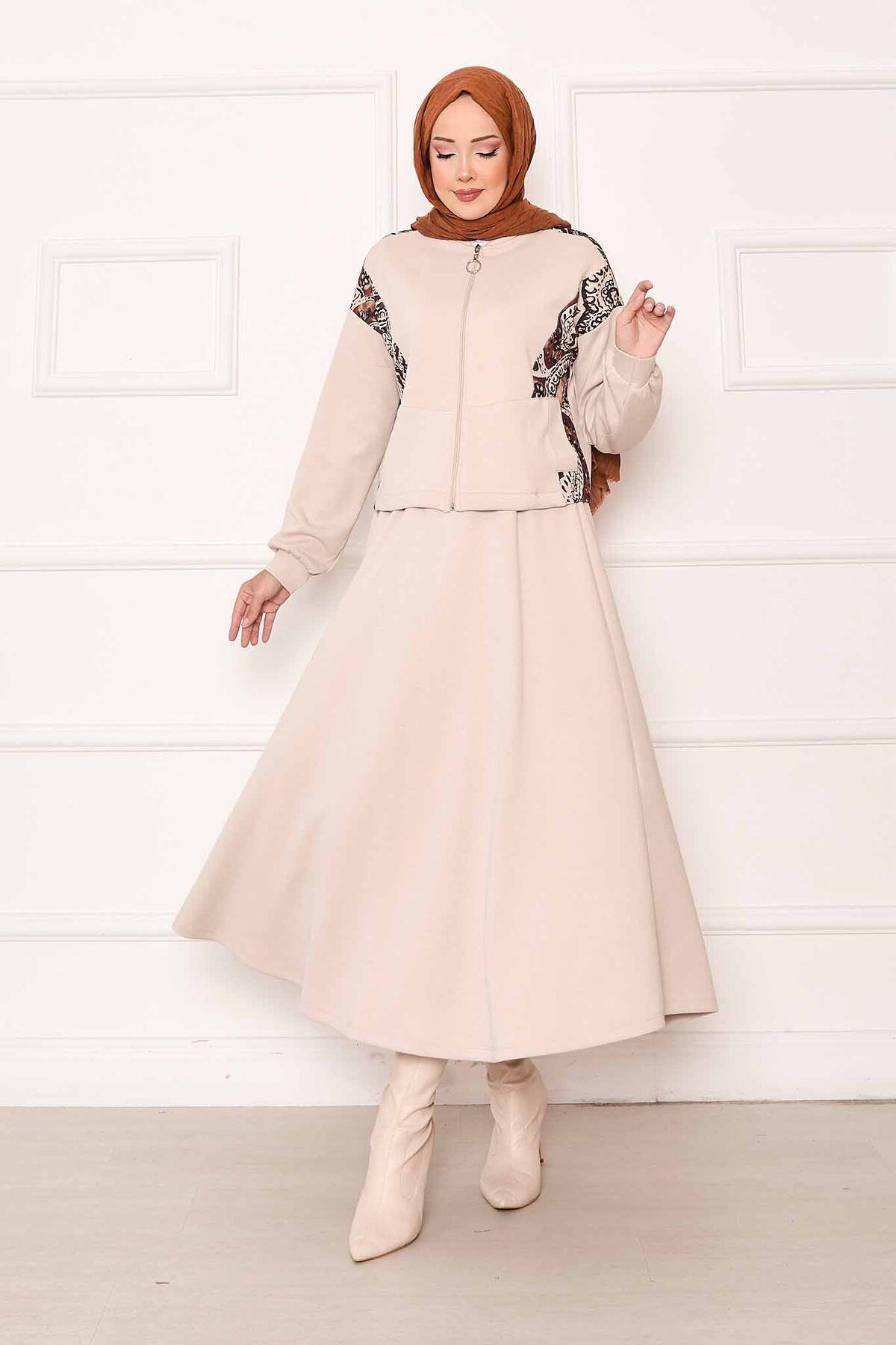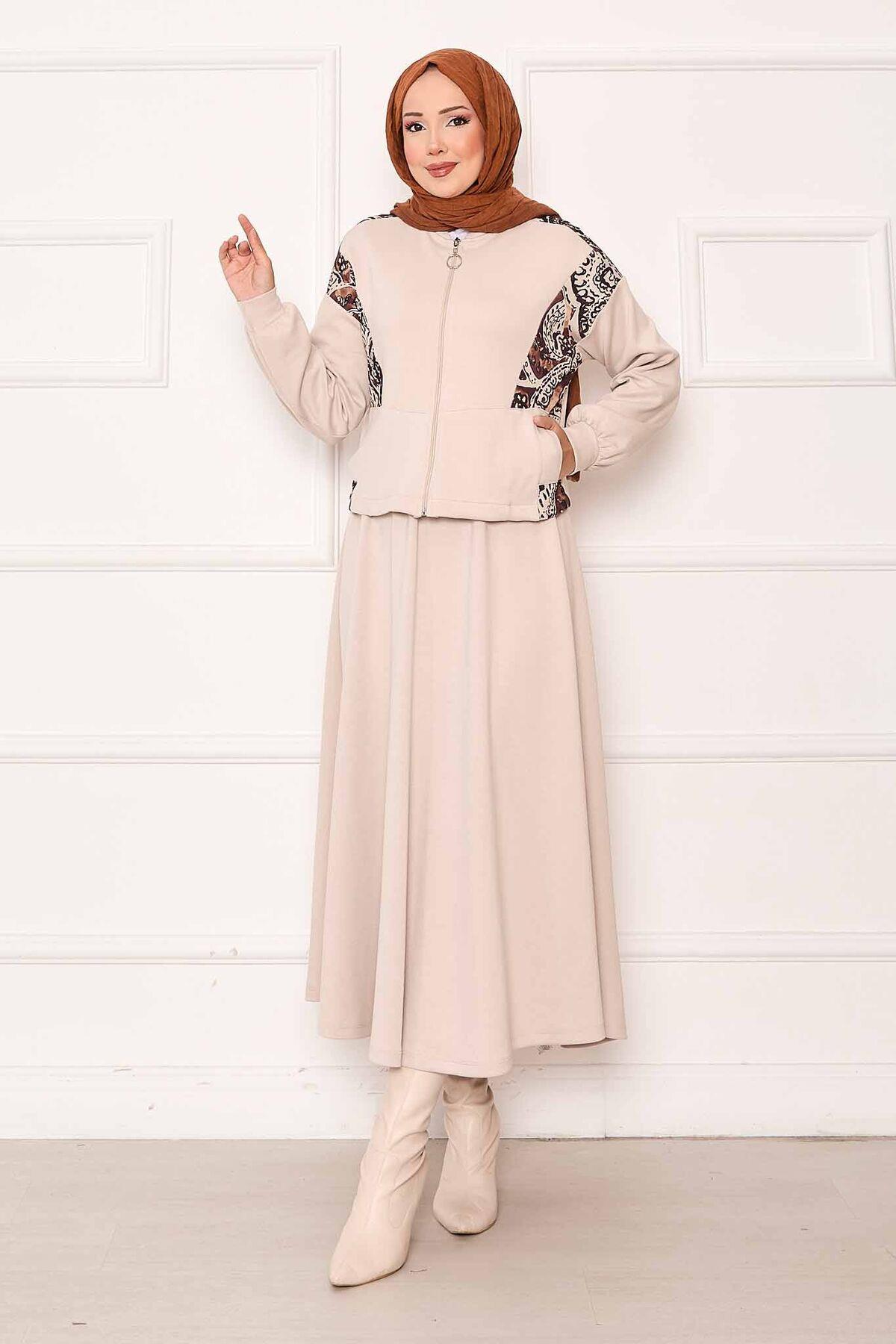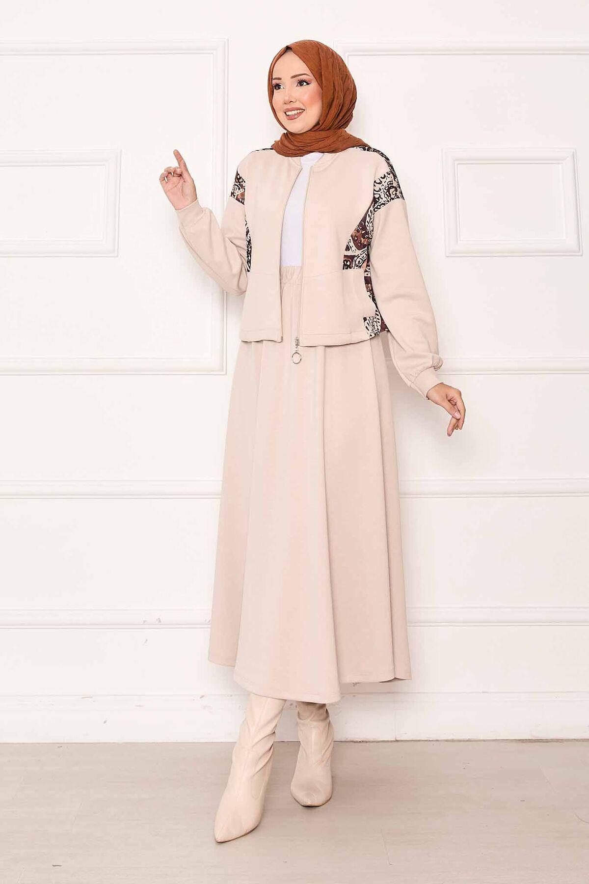 Garni Detailed Cropped Skirt 2 Piece Set Beige (125M00621130R0638)