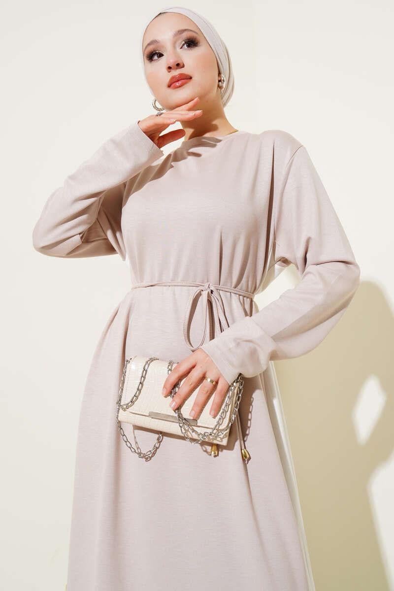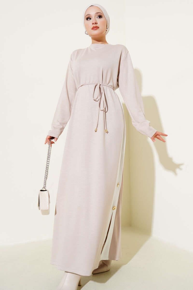 Garnished Rope Belted Loysha Dress Stone (0026-3189-674162)