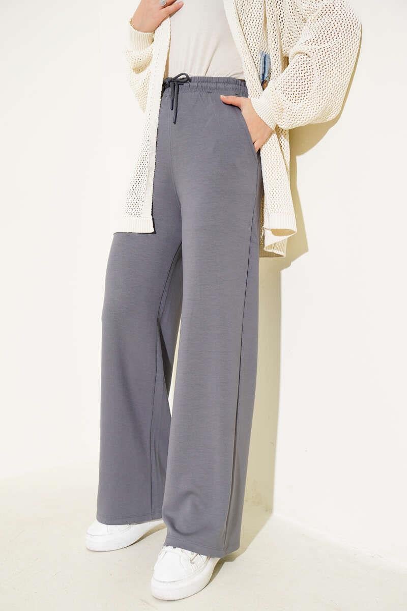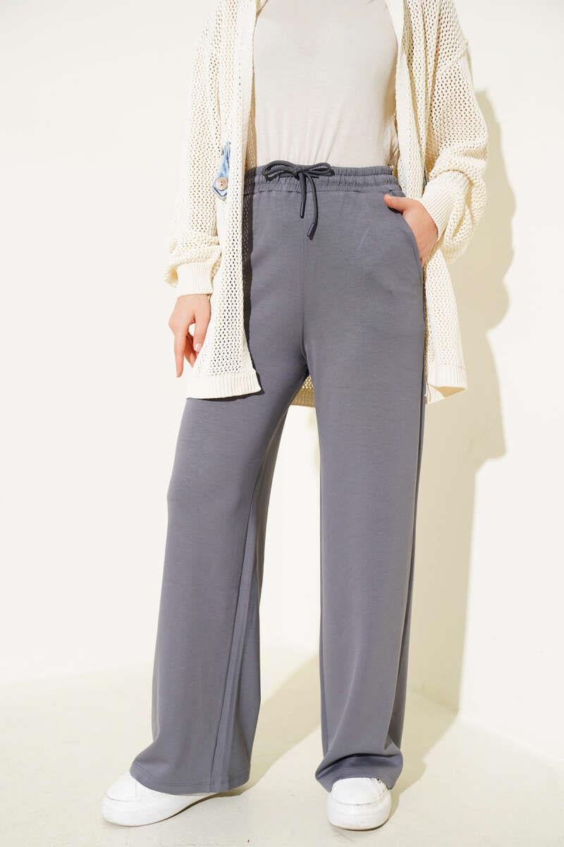 Wide Leg Elastic Waist Basic Trousers Gray (0643-428-10-675821)