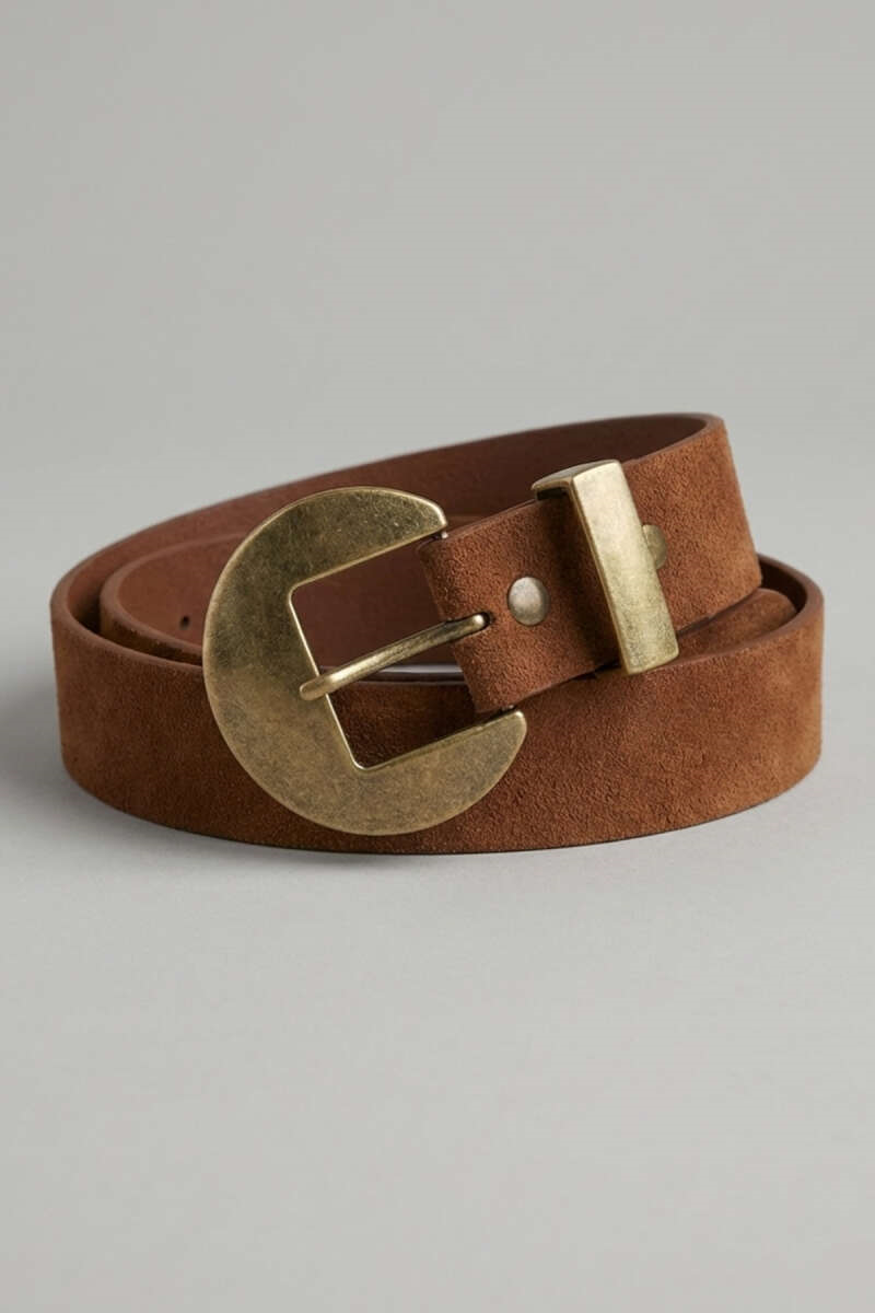 Wide Buckle Belt, Tan Suede (0678-4355-713225)