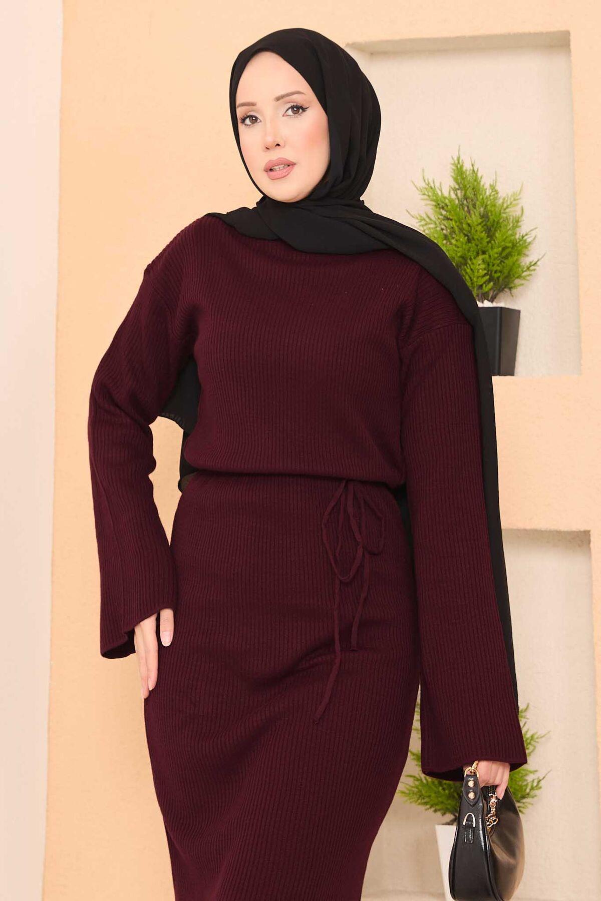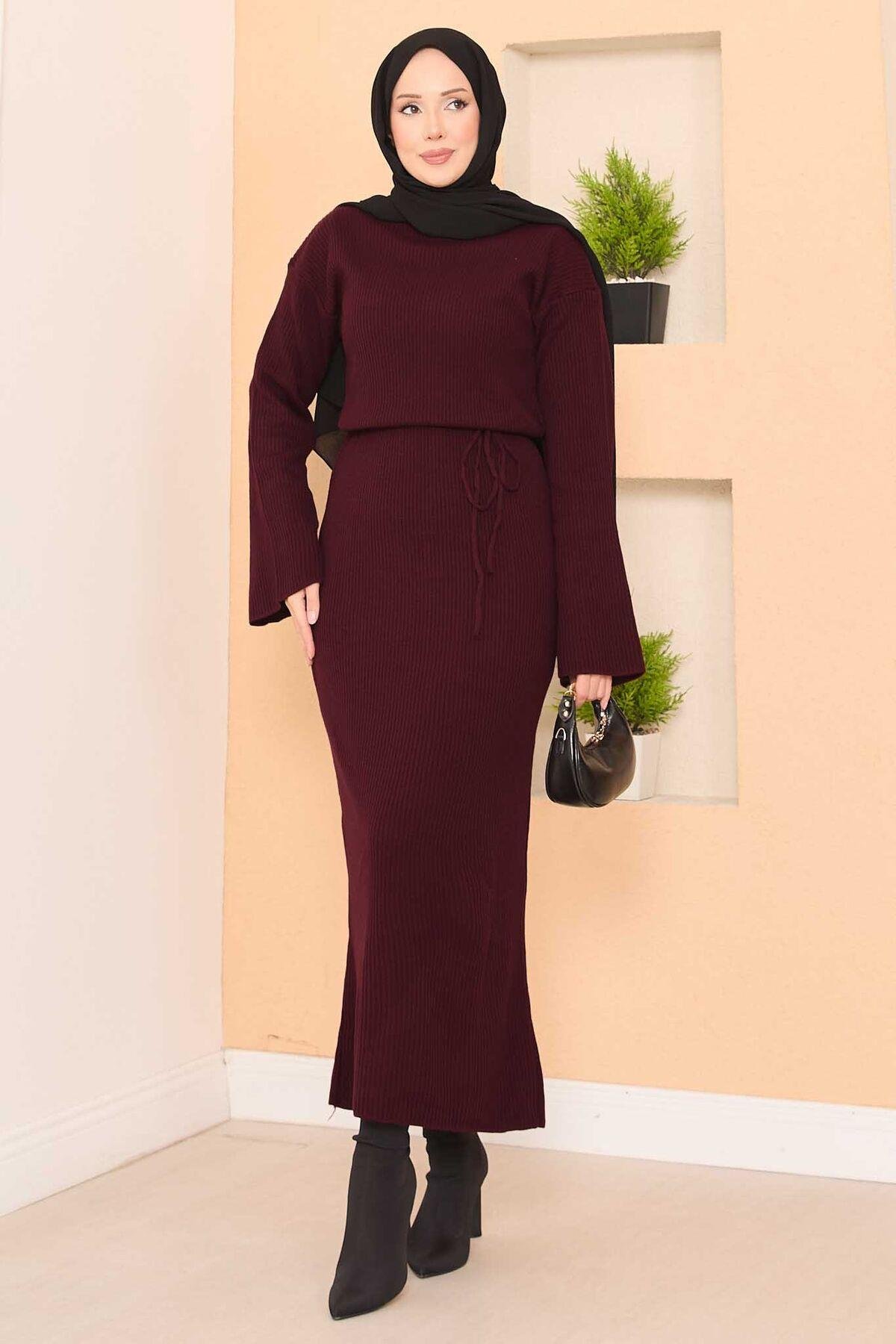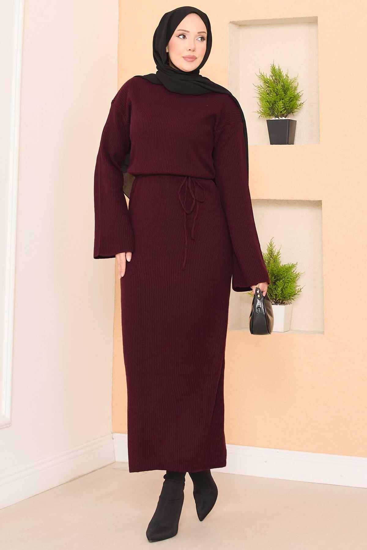 • Product is for the autumn-winter season. Long hijab dress with wide sleeves, ribbed trim, removable belt.