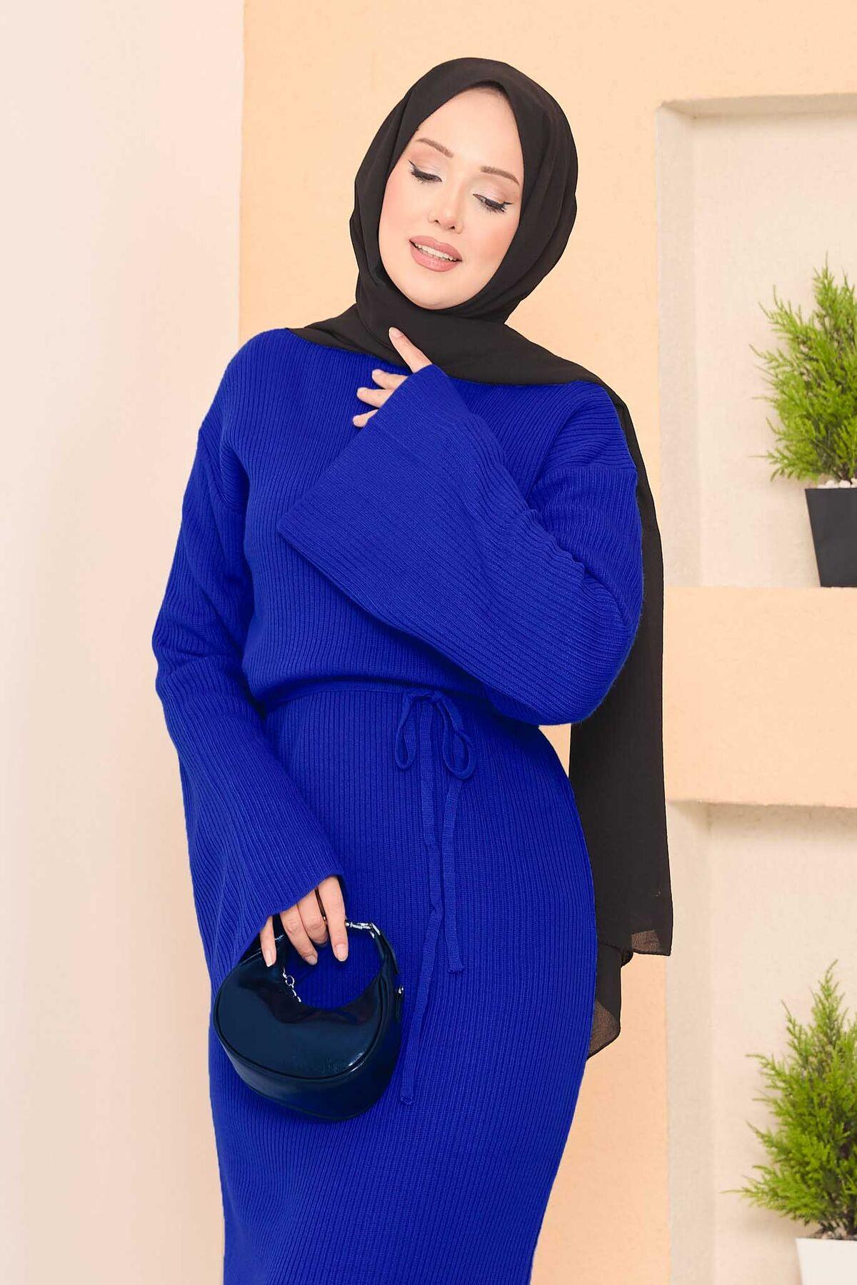 • Product is for the autumn-winter season. Long hijab dress with wide sleeves, ribbed trim, removable belt.