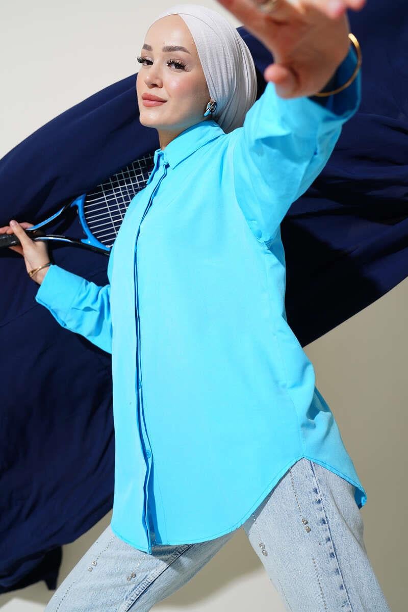 Hidden Button Basic Shirt Blue (0314-1147-10-583856)