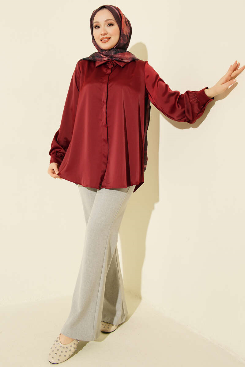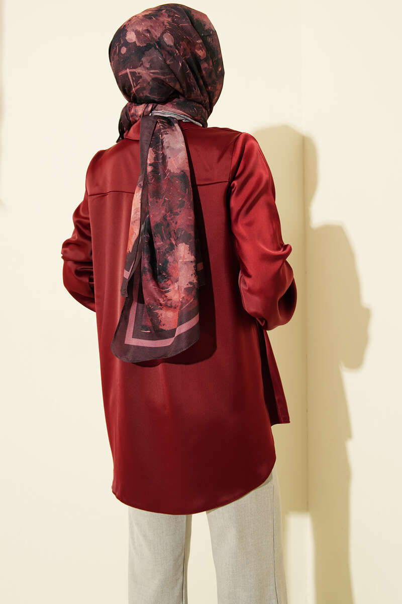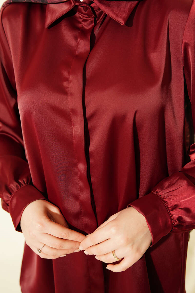 Basic Satin Shirt with Concealed Buttons, Burgundy (0999-5186-724369)