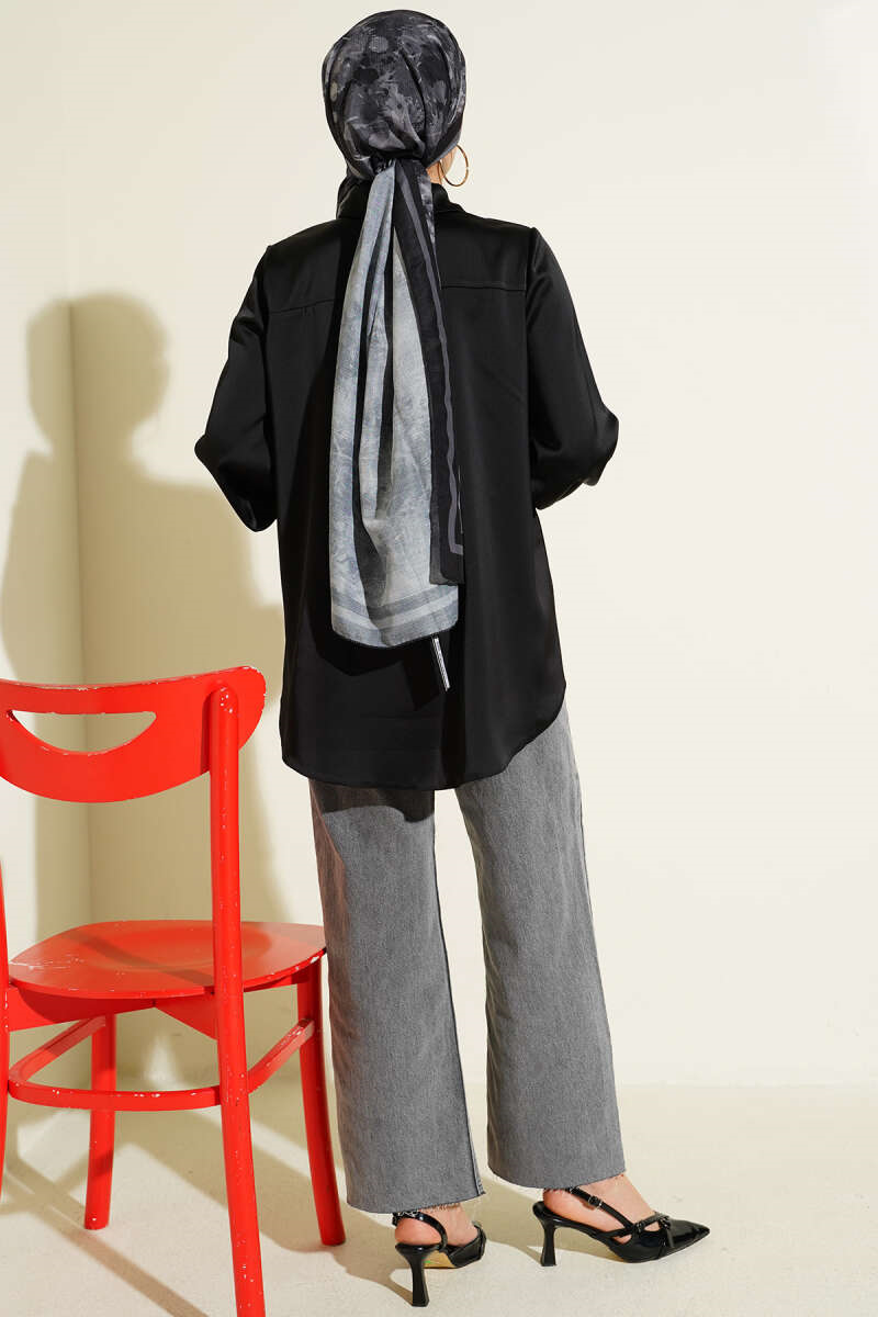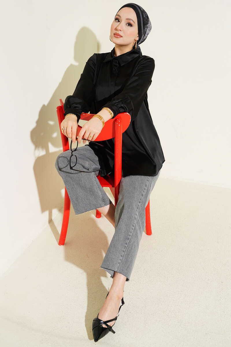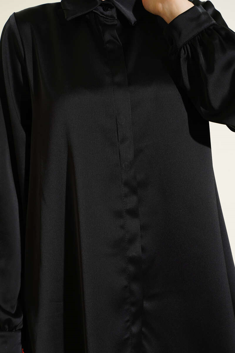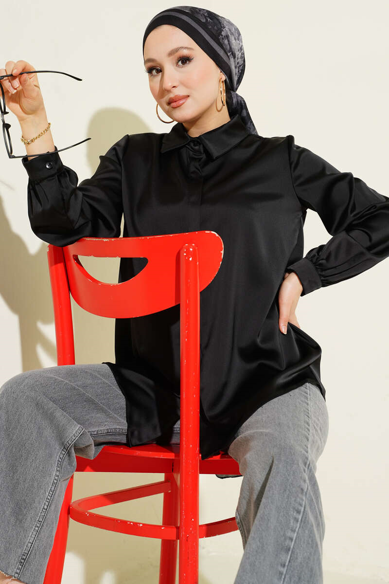 Hidden Button Basic Satin Shirt Black (0999-5186-724387)