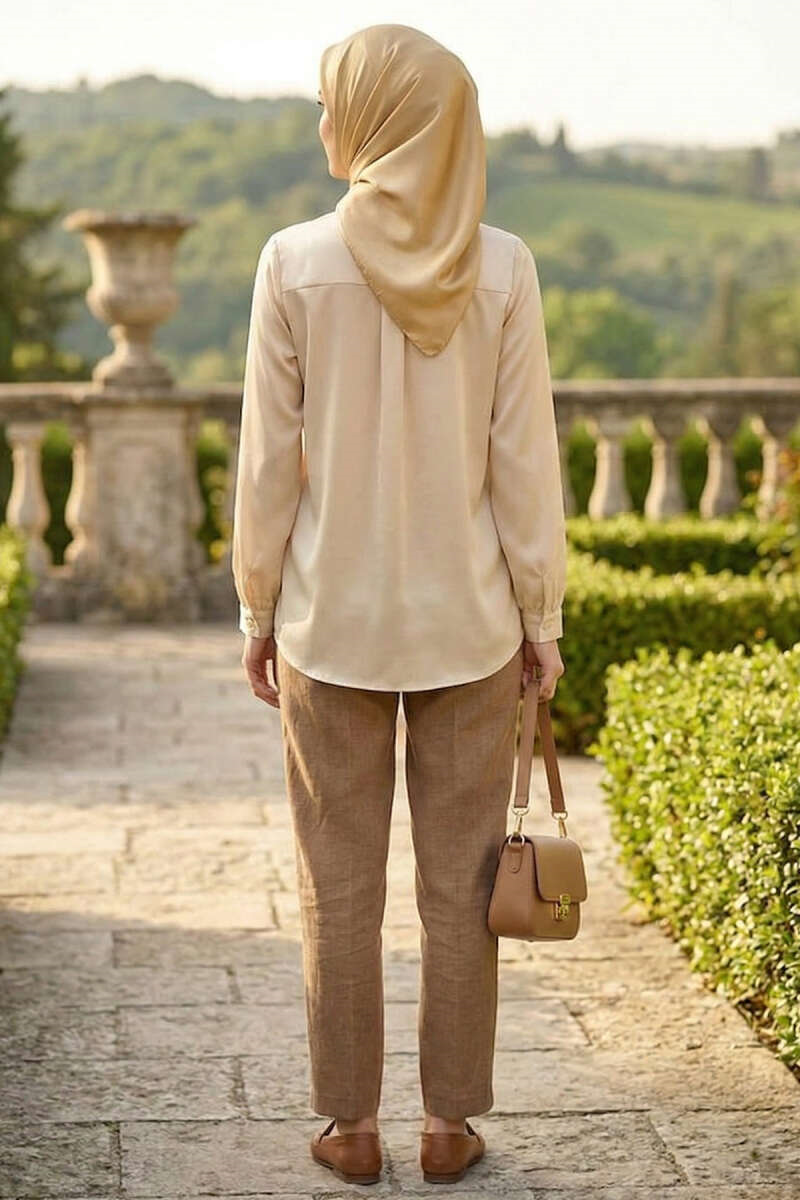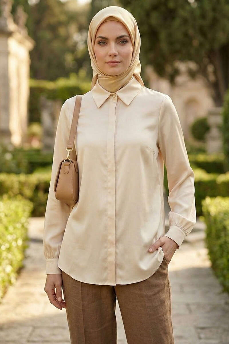 Basic Satin Shirt with Hidden Buttons (Stone) (0999-5186-731209)