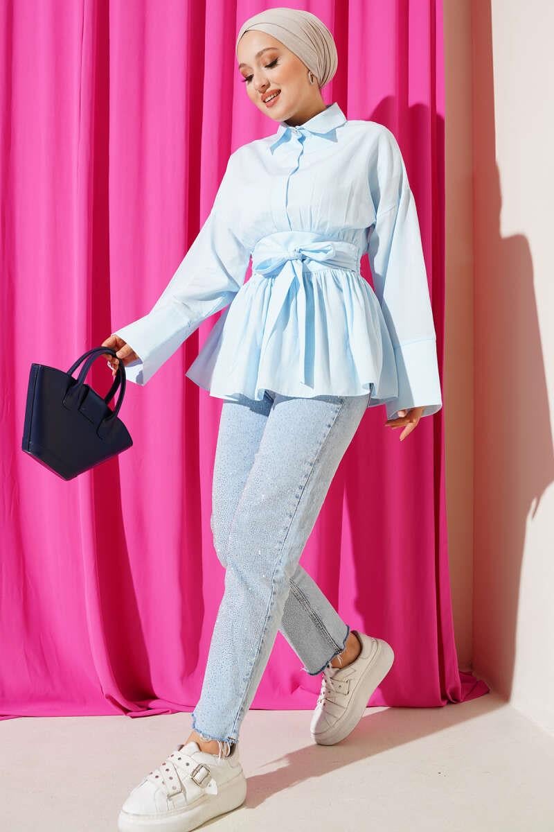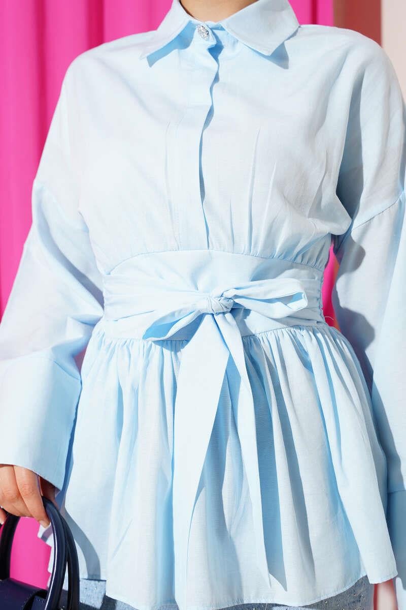 Hidden Button Waist Belted Shirt Baby Blue (0943-1395-671769)