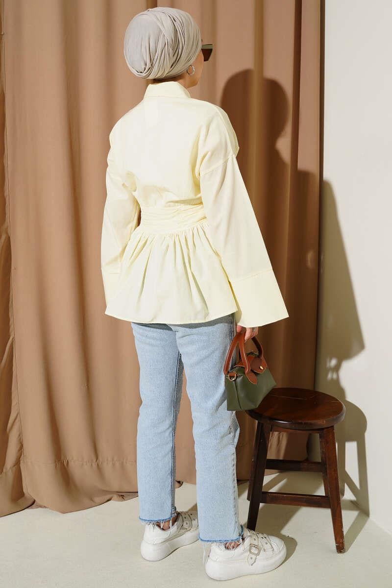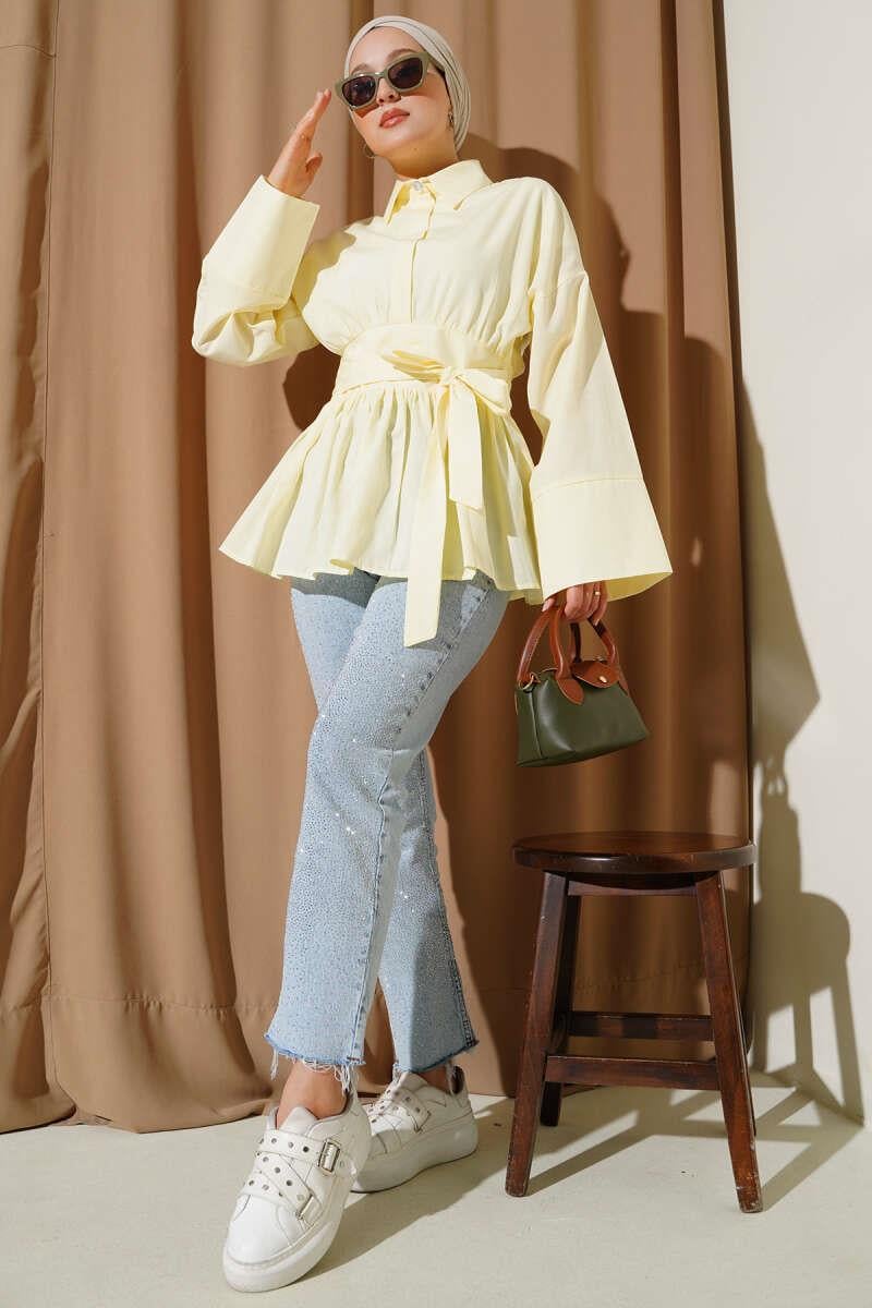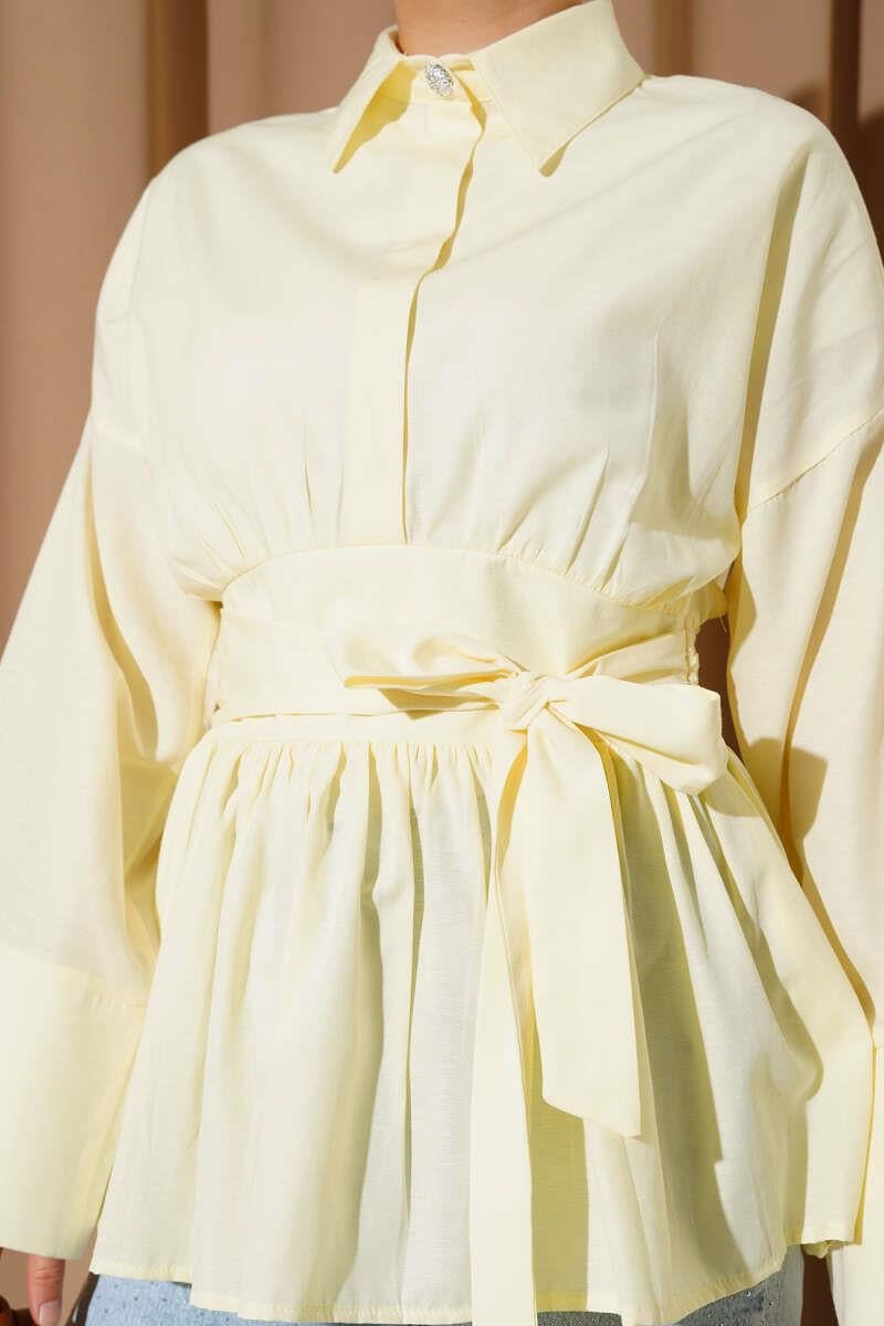 Hidden Button Waist Belted Shirt Yellow (0943-1395-671784)