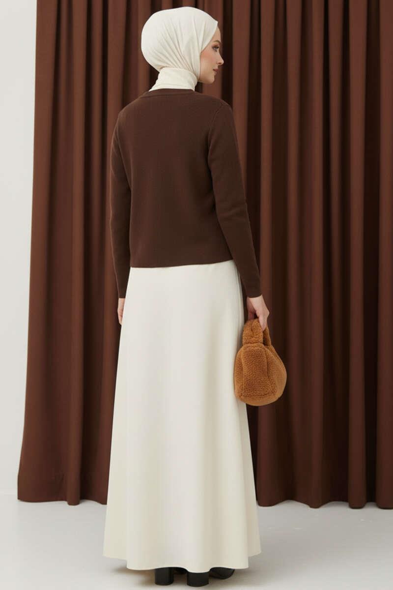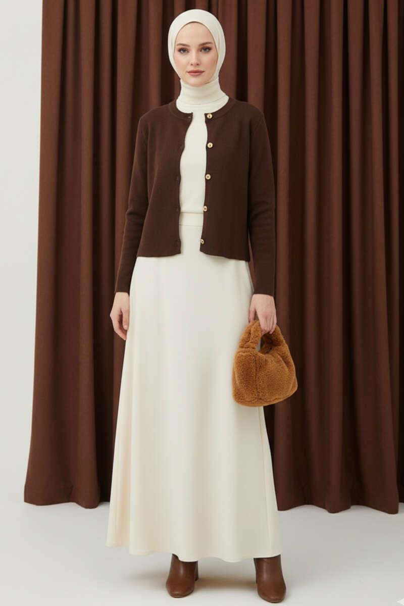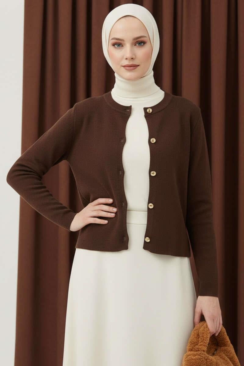 Gold Button Detailed Short Knit Cardigan Brown (8374-0793-679232)