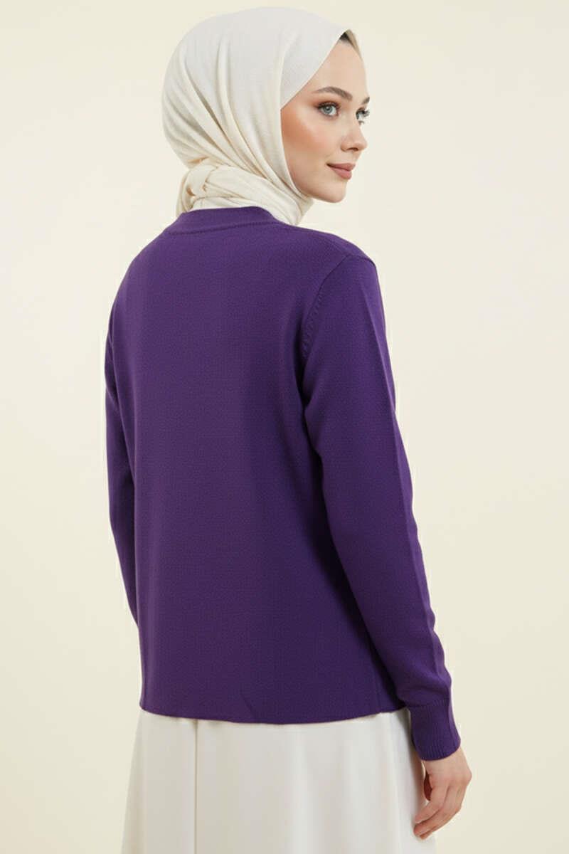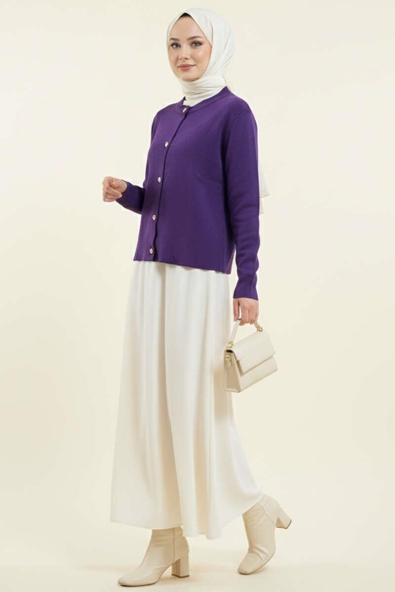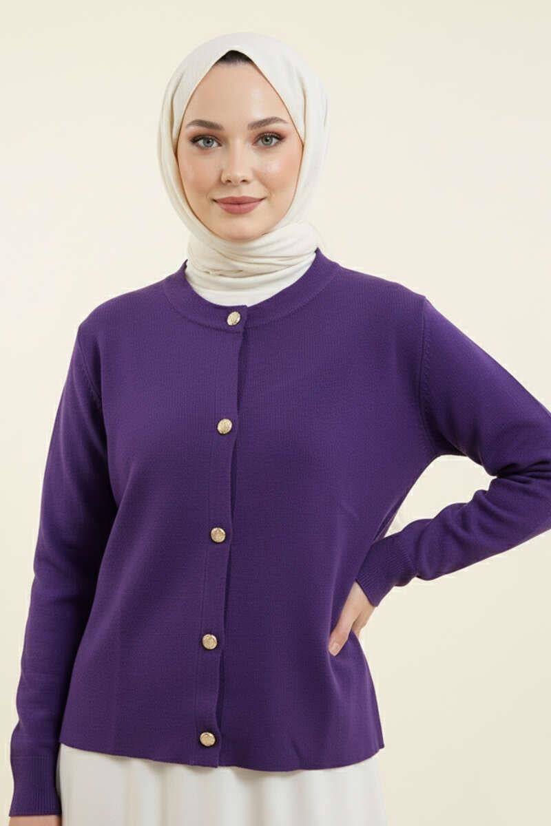 Gold Button Detailed Short Knit Cardigan Purple (8374-0793-679233)