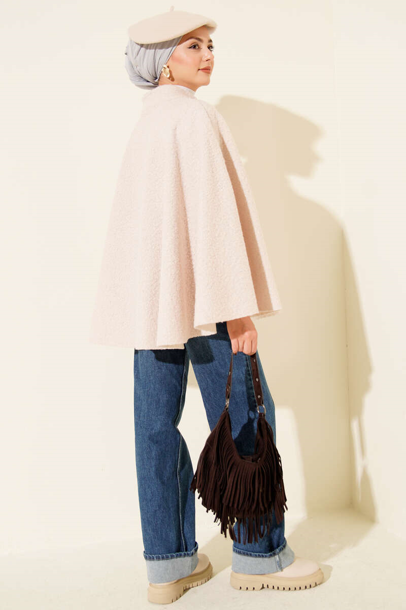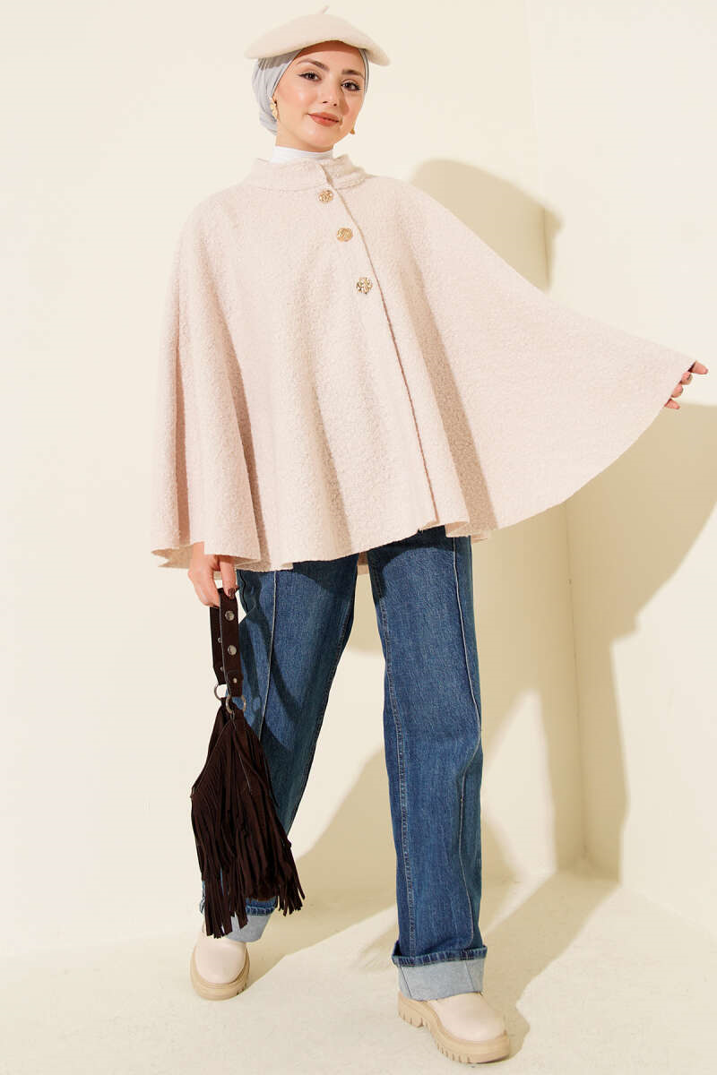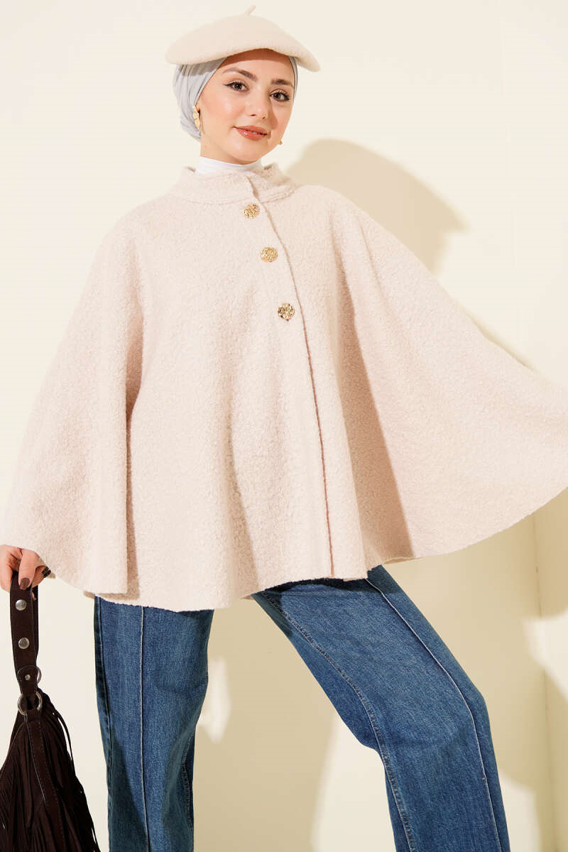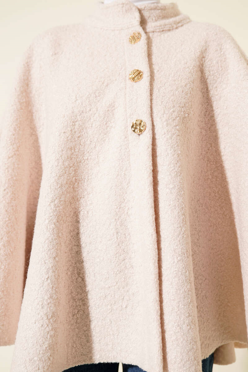 Beige Bouclé Poncho with Gold Buttons (0569-3233-694607)