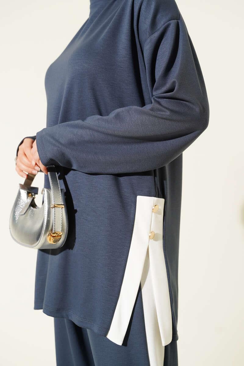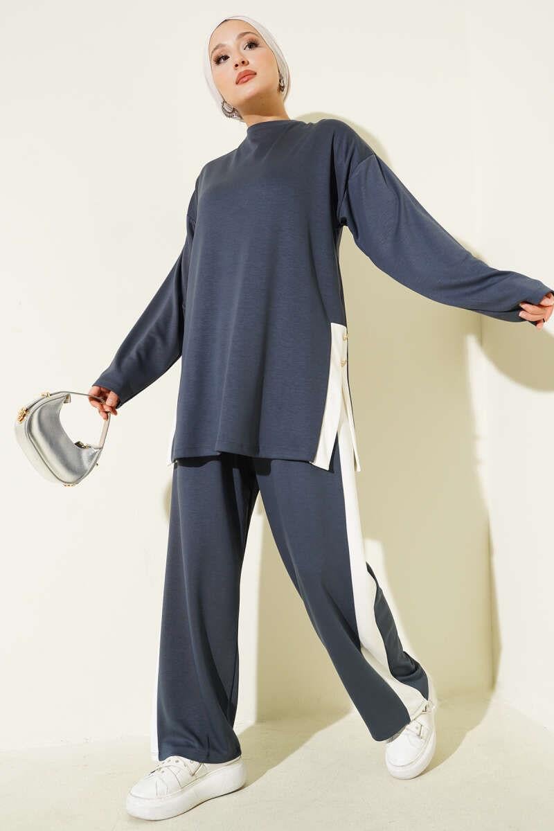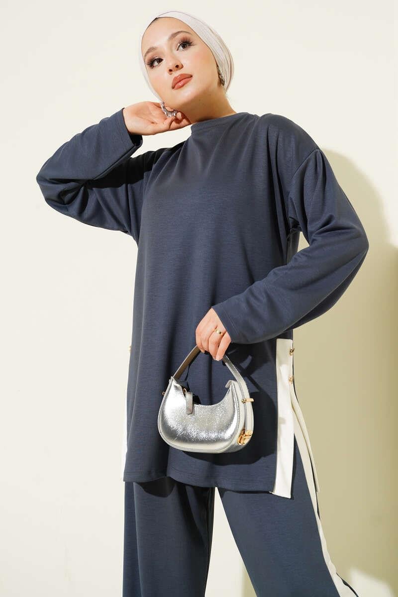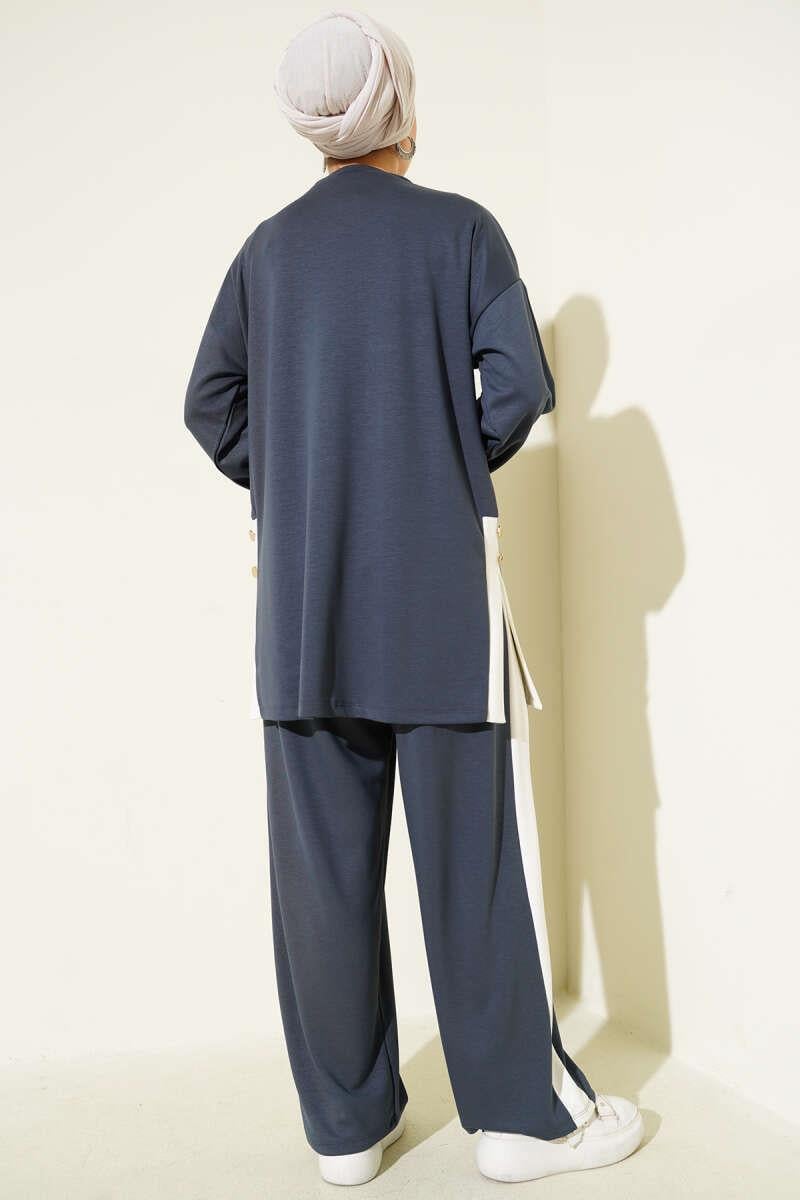 Gold Buttoned Garnished Loysha 2 Piece Set Smoke (0829-5312-665995)