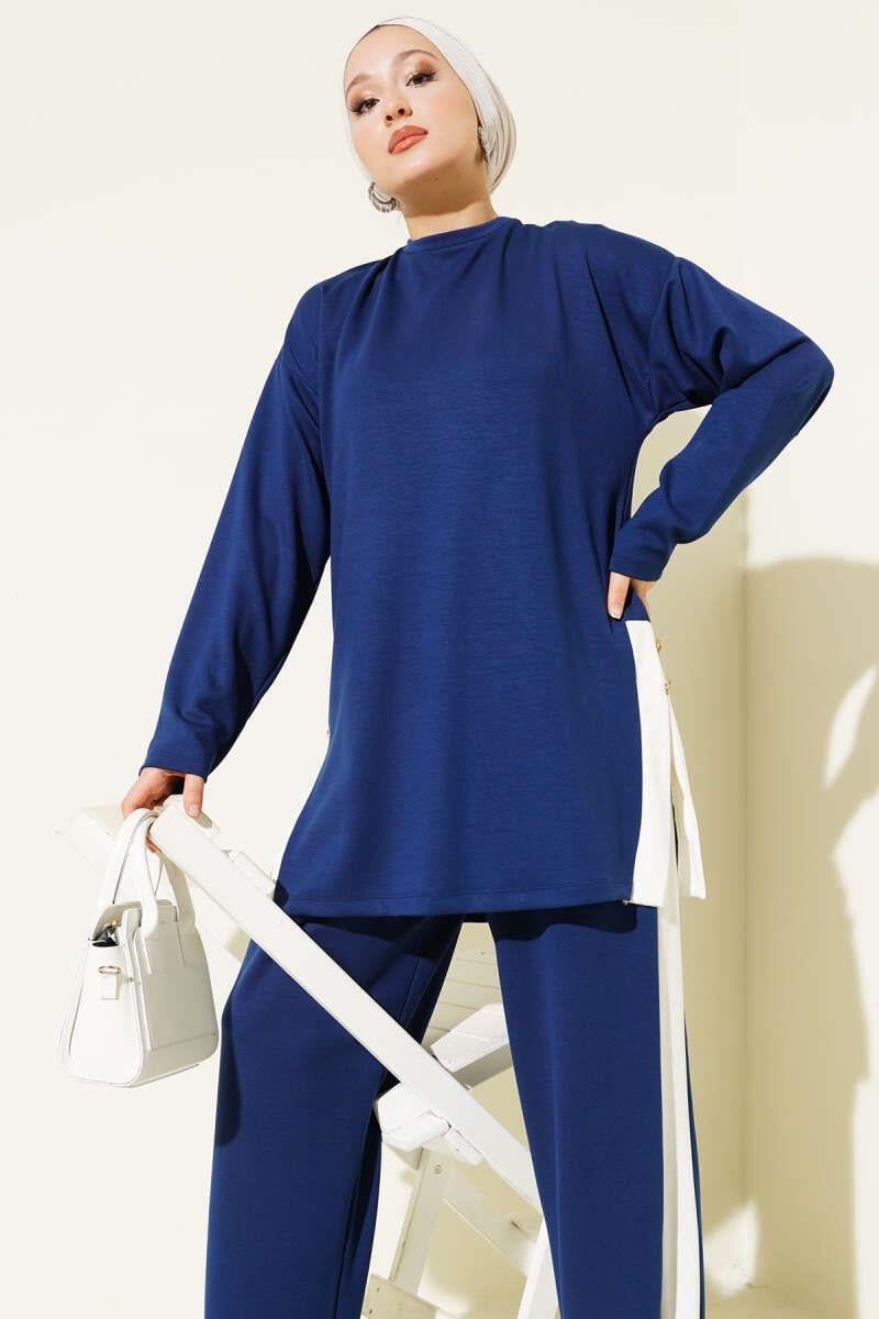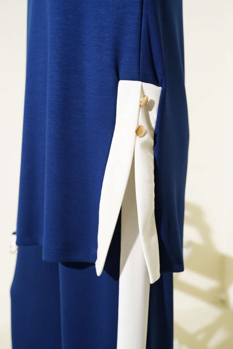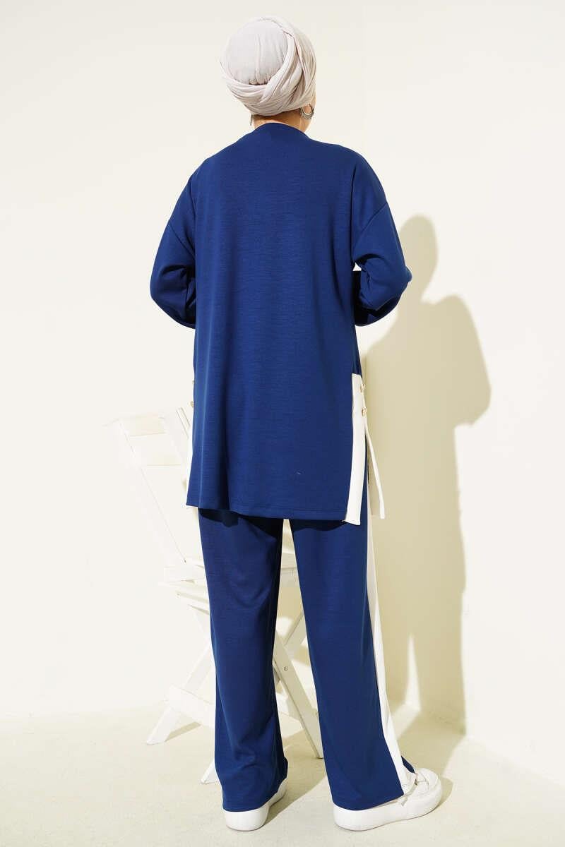 Gold Buttoned Garnished Loysha 2 Piece Set Navy Blue (0829-5312-665999)