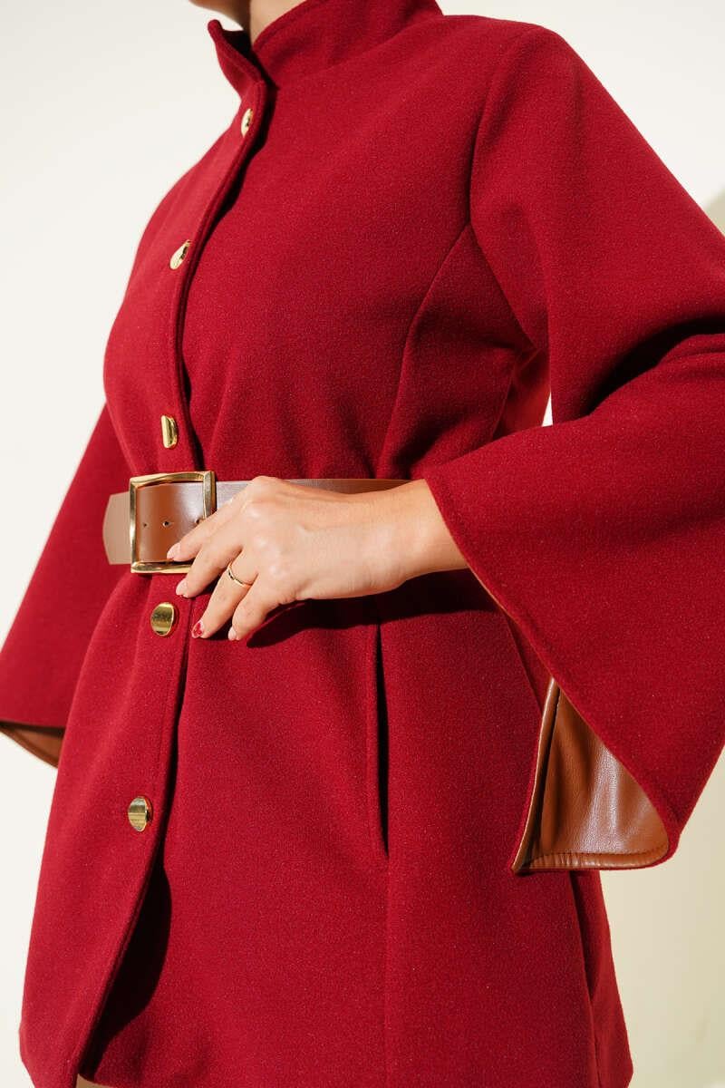 Gold Buttoned Cashmere Poncho Burgundy (0999-5076-674057)