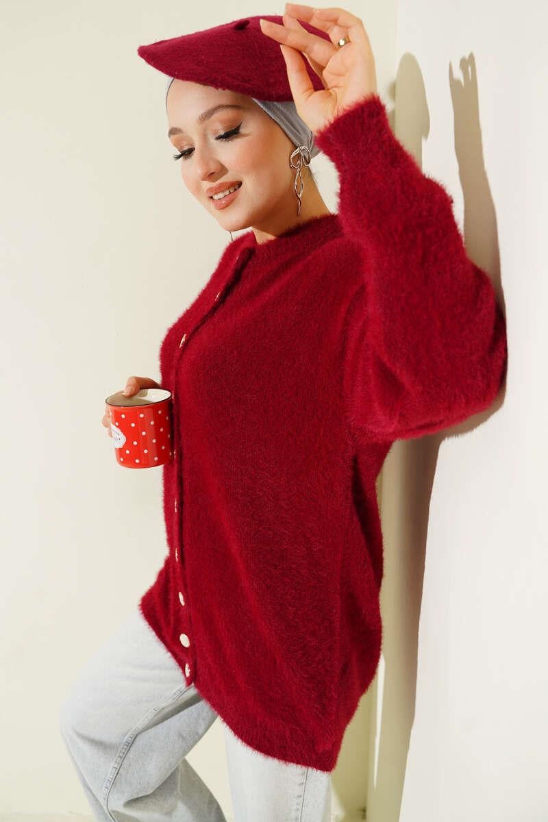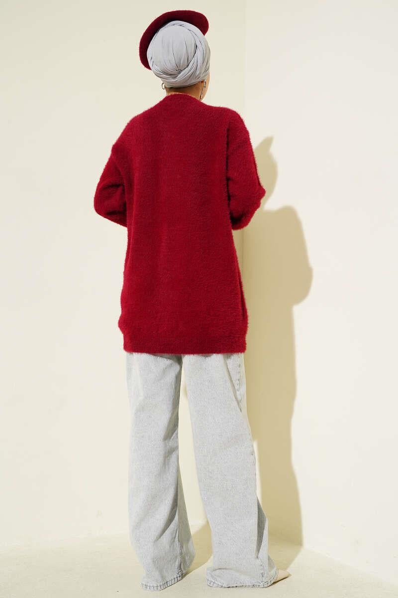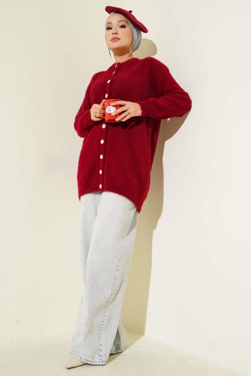 Gold Buttoned Plush Cardigan Burgundy (8387-23739-679091)