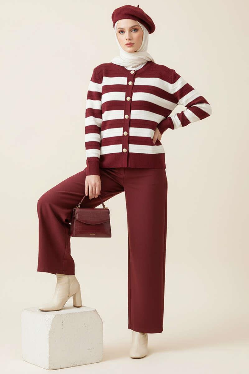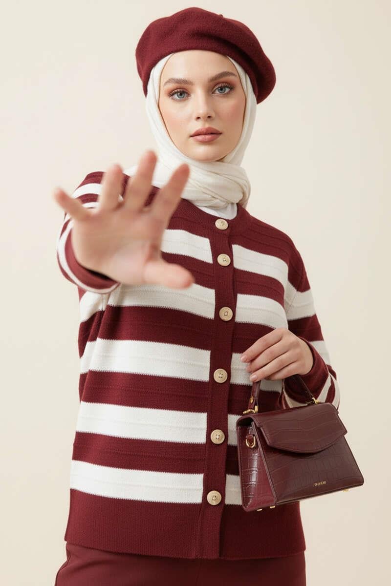 Gold Buttoned Knitted Short Cardigan Burgundy (6999-3223-677184)