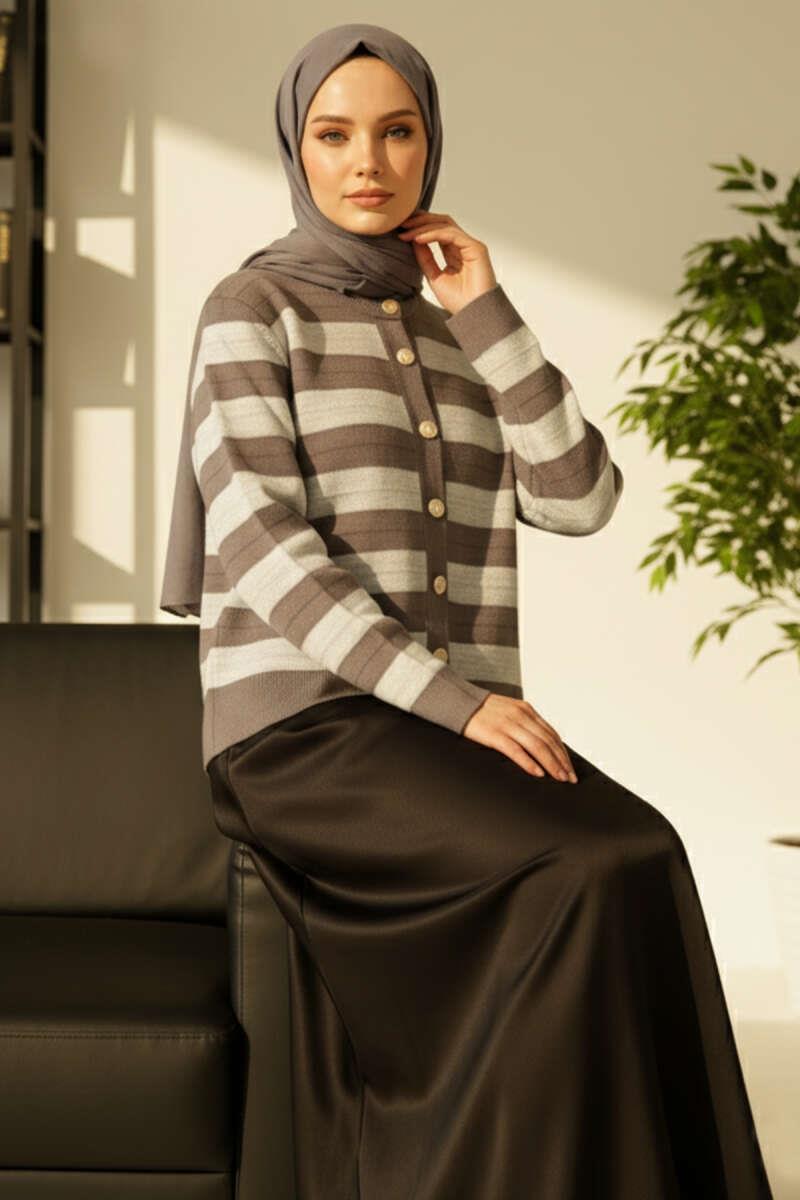 Gold Buttoned Knitwear Short Cardigan Smoke (6999-3223-677185)