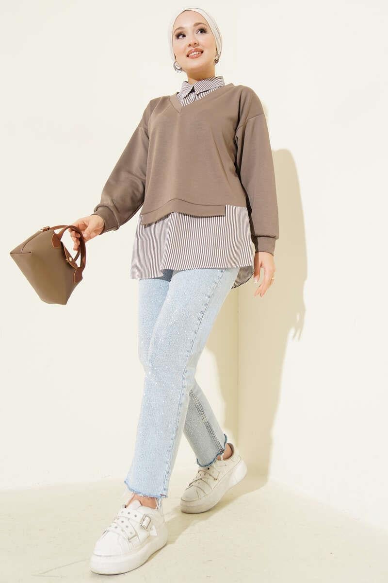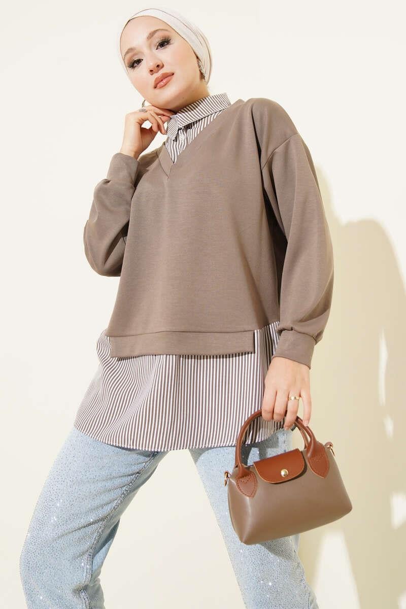 Shirt Collar Granite Tunic Mink Striped (0643-18687-675777)