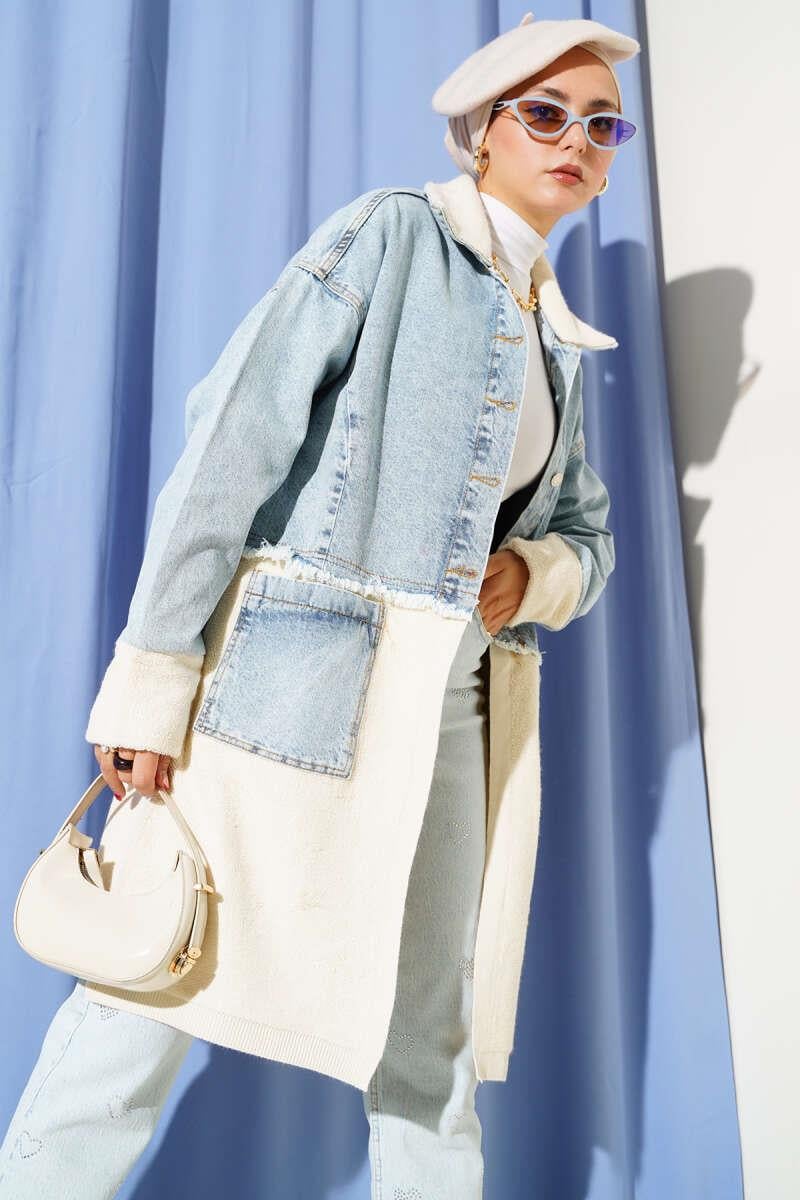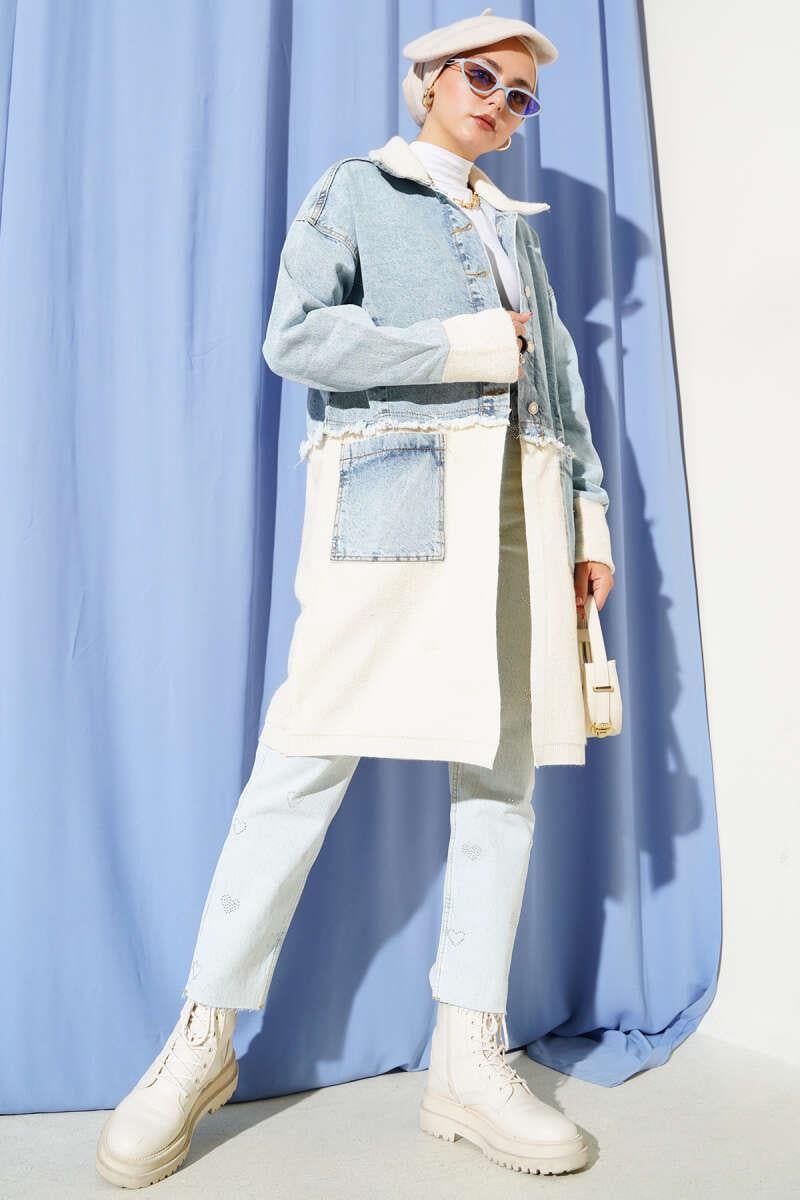 Shirt Collar Long Denim Jacket Light Blue (8378-25540-674423)