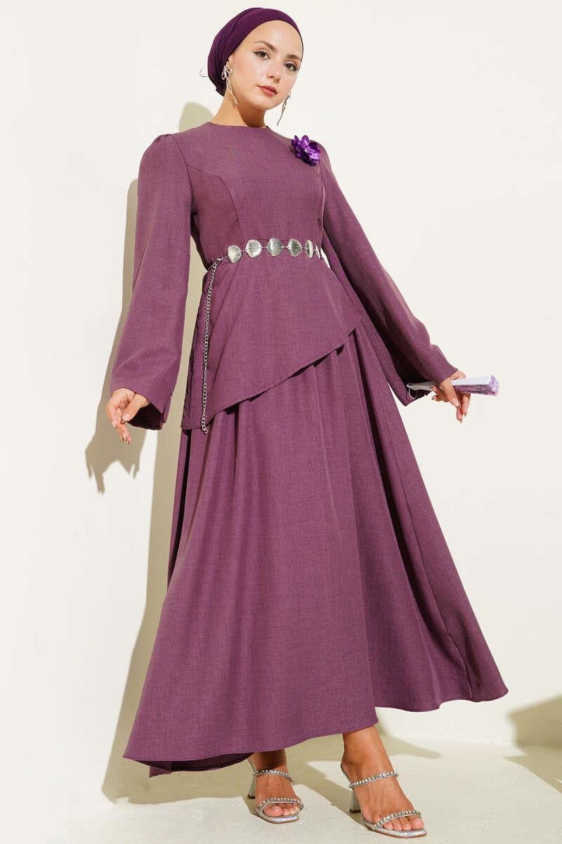 Rose Brooch Skirted 2 Piece Set Dusty Rose (8209-1220-658942)