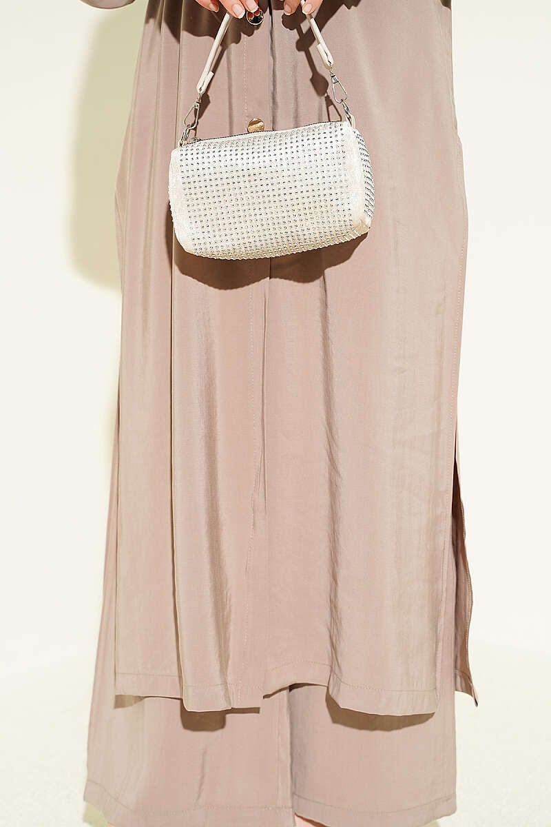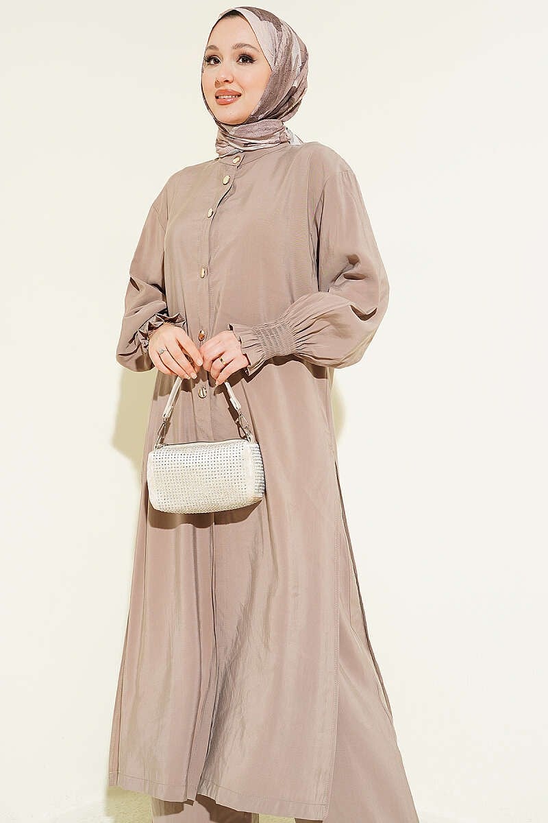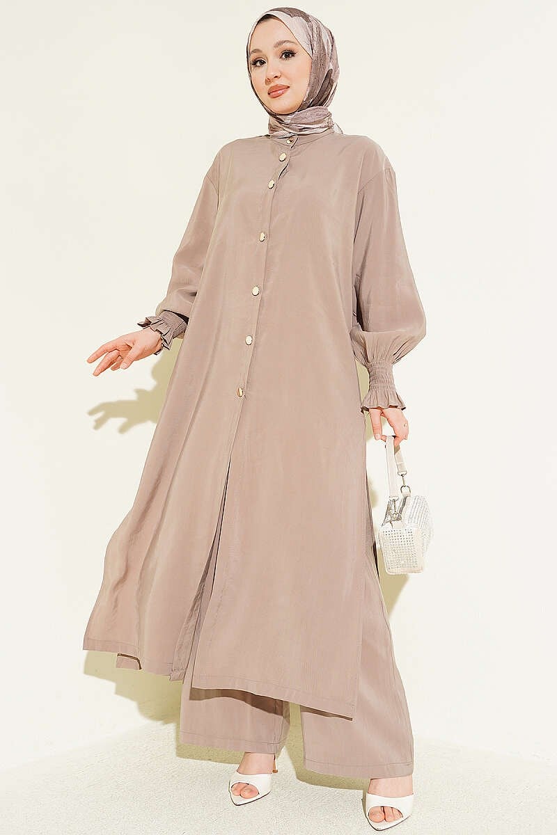 Mandarin Collar Button-Down Basic 2 Piece Set, Beige (8444-8672-733043)