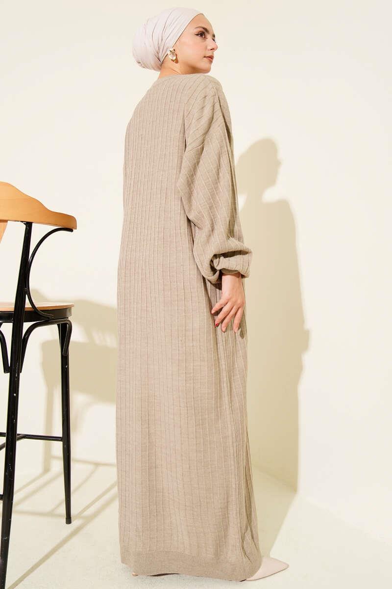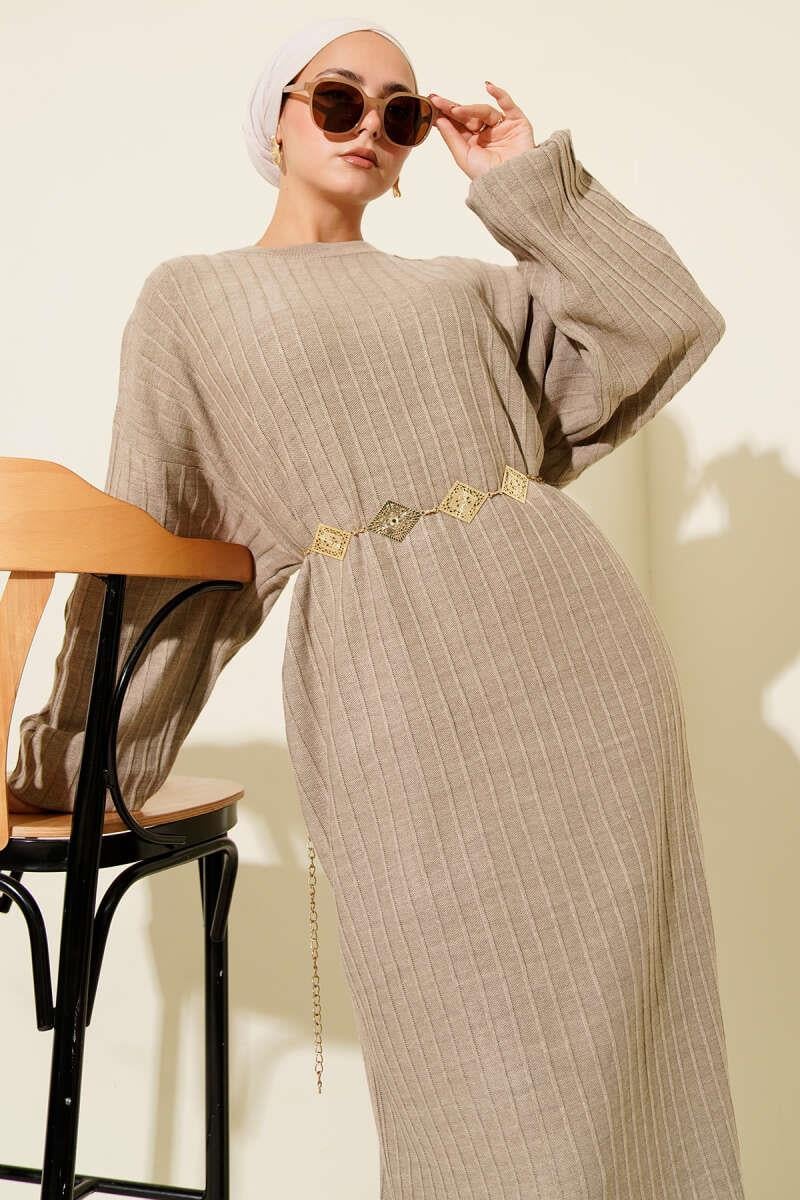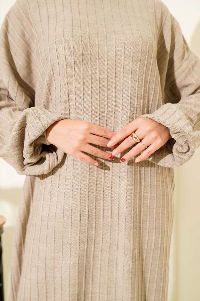 Thin Striped Casual Knit Dress Beige (0875-7147-671754)