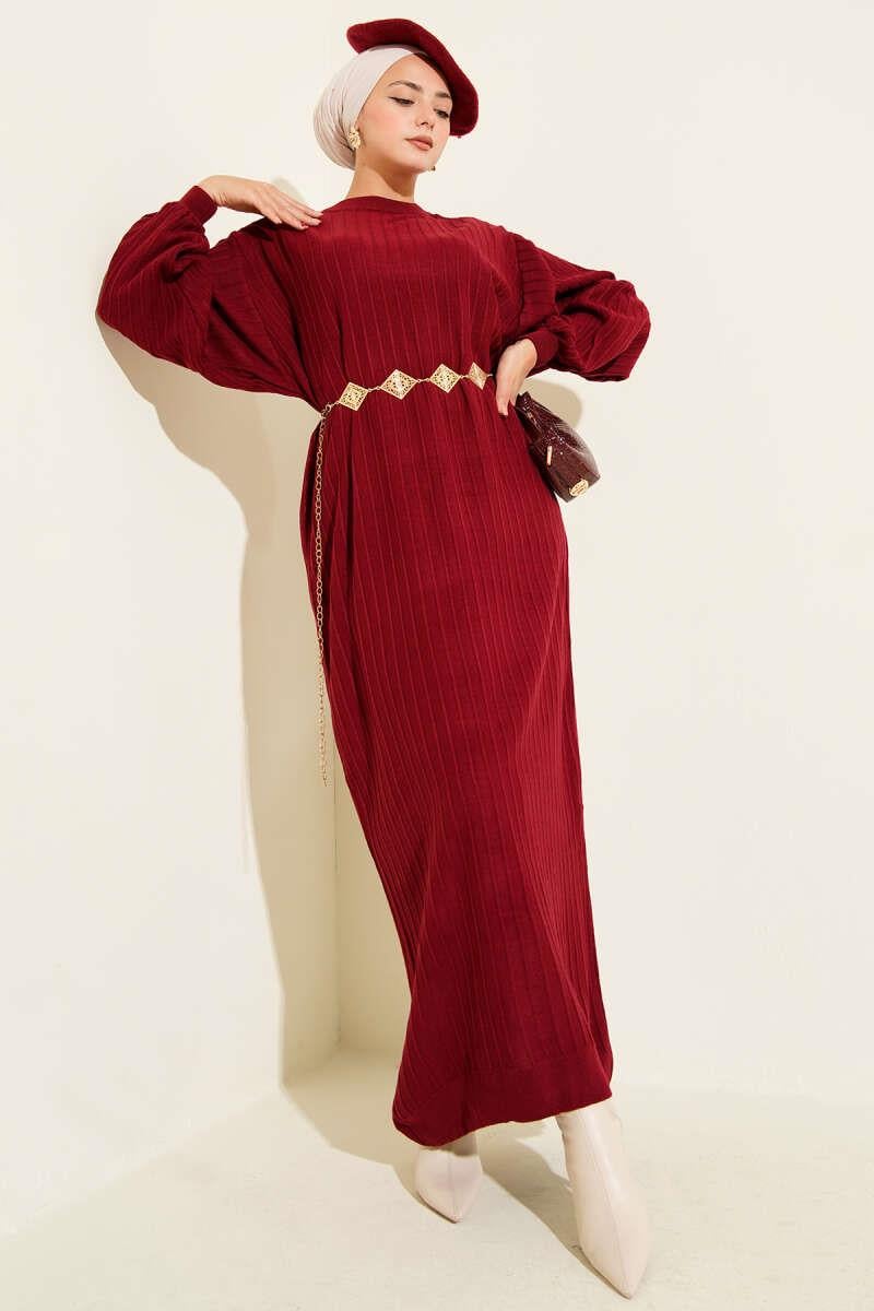 Thin Striped Casual Knit Dress, Burgundy (0875-7147-671755)