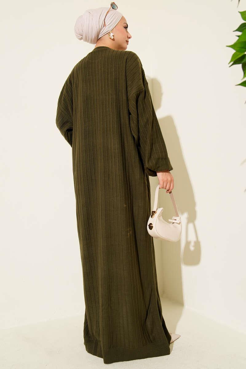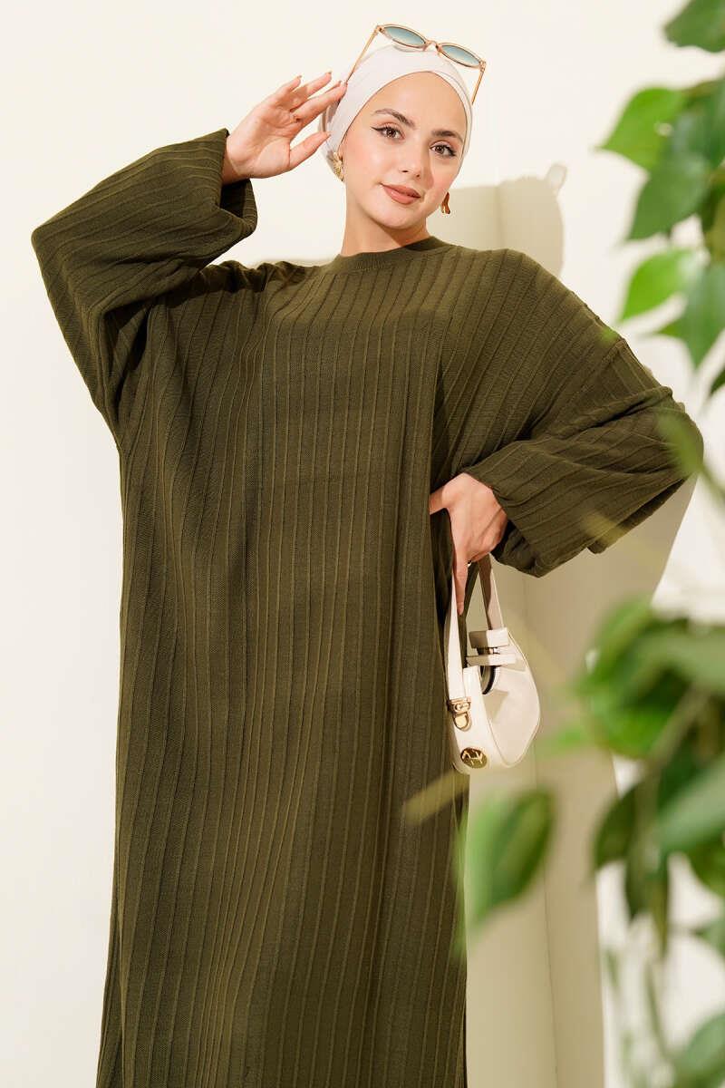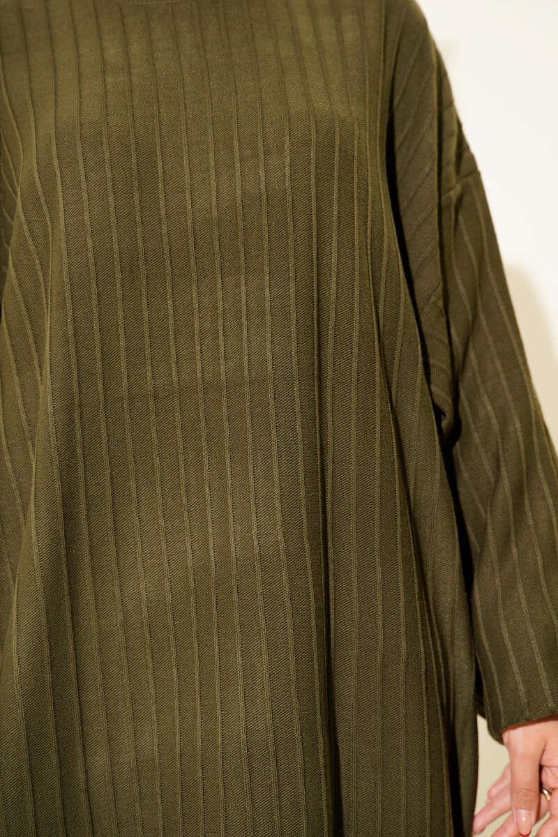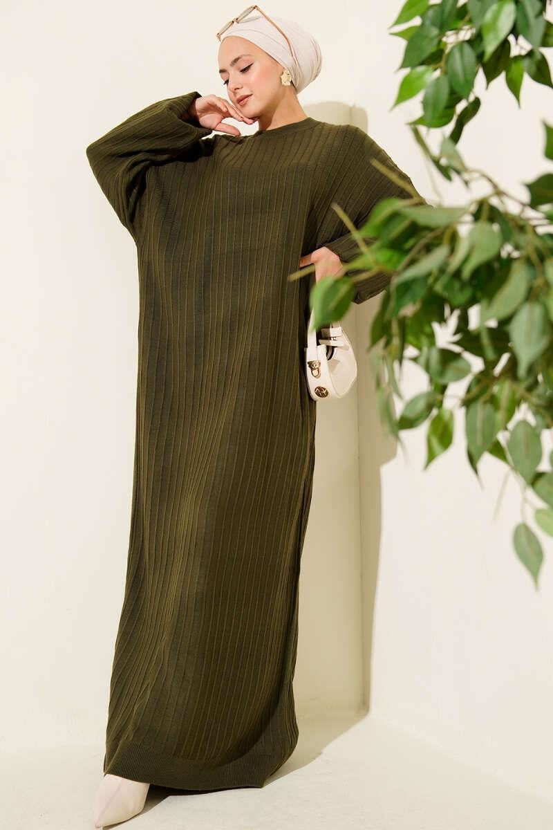 Thin Striped Casual Knit Dress Khaki (0875-7147-671757)