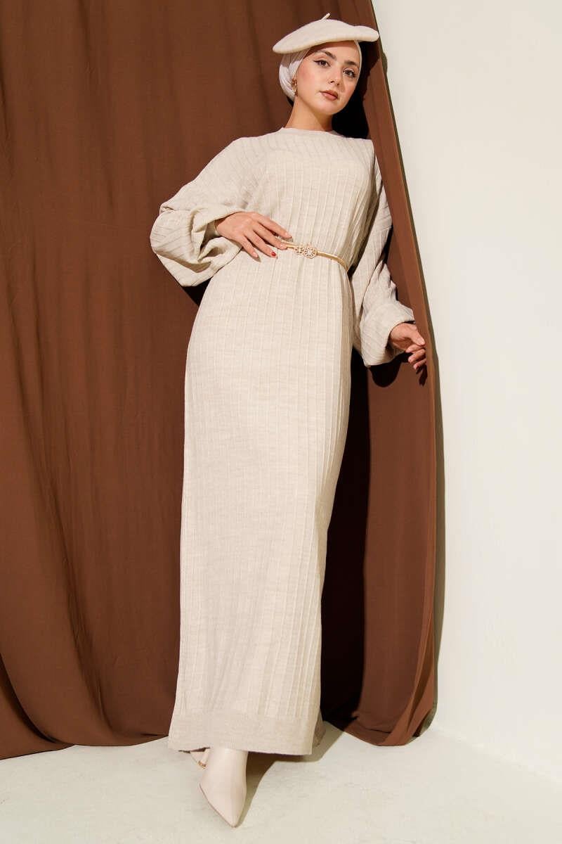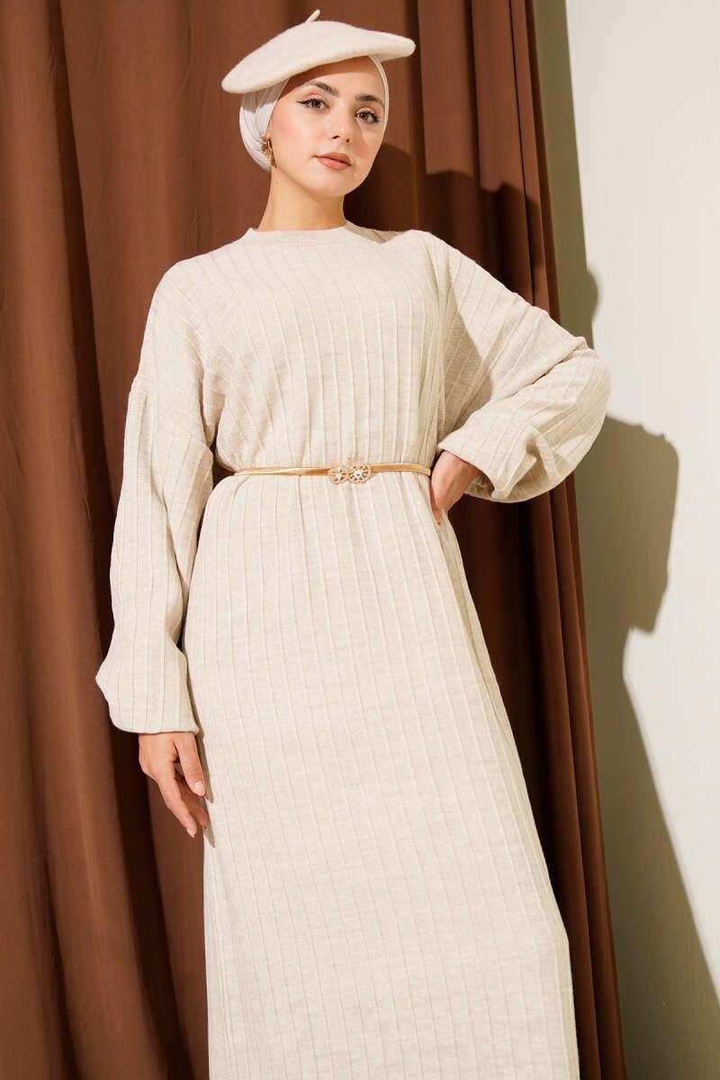 Loose Knitted Dress with Thin Stripes and Stone (0875-7147-671760)