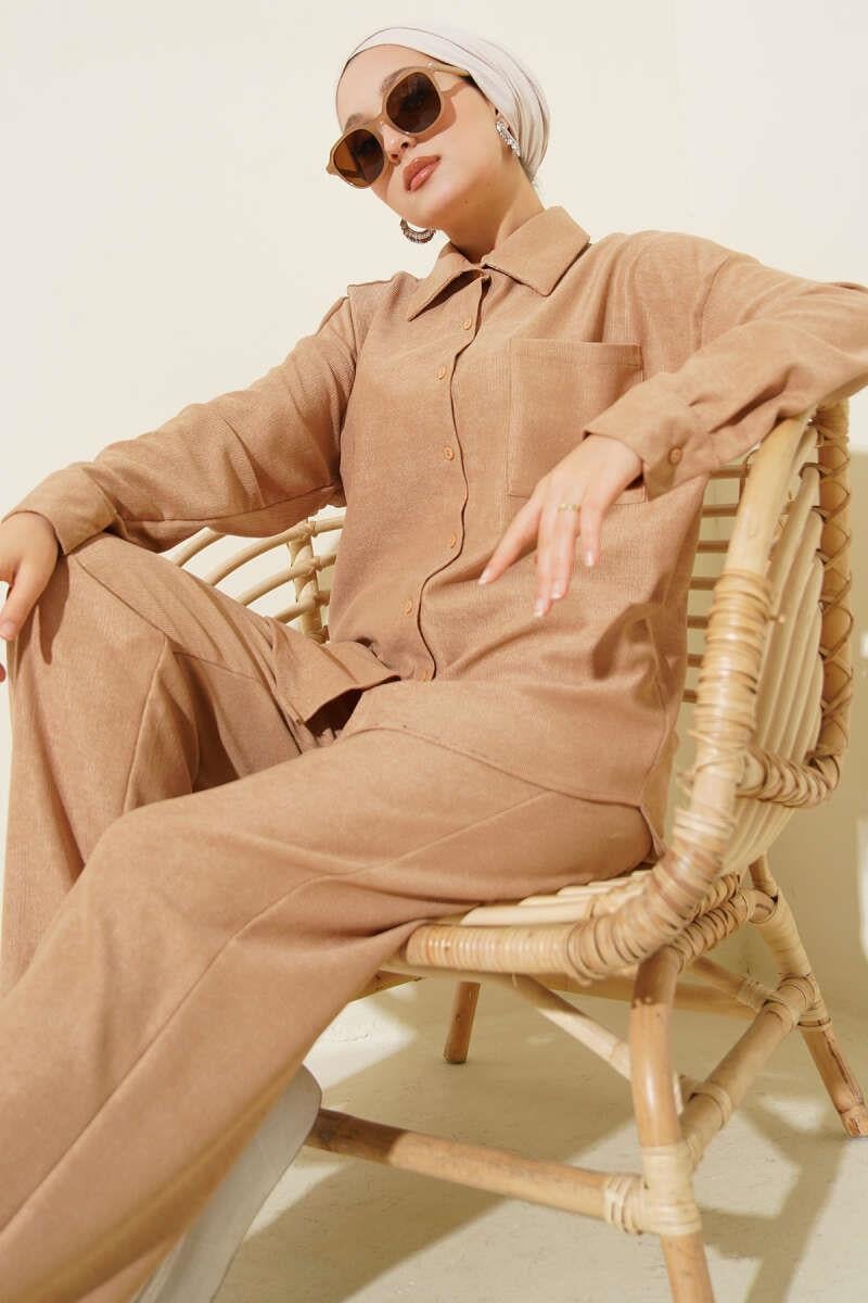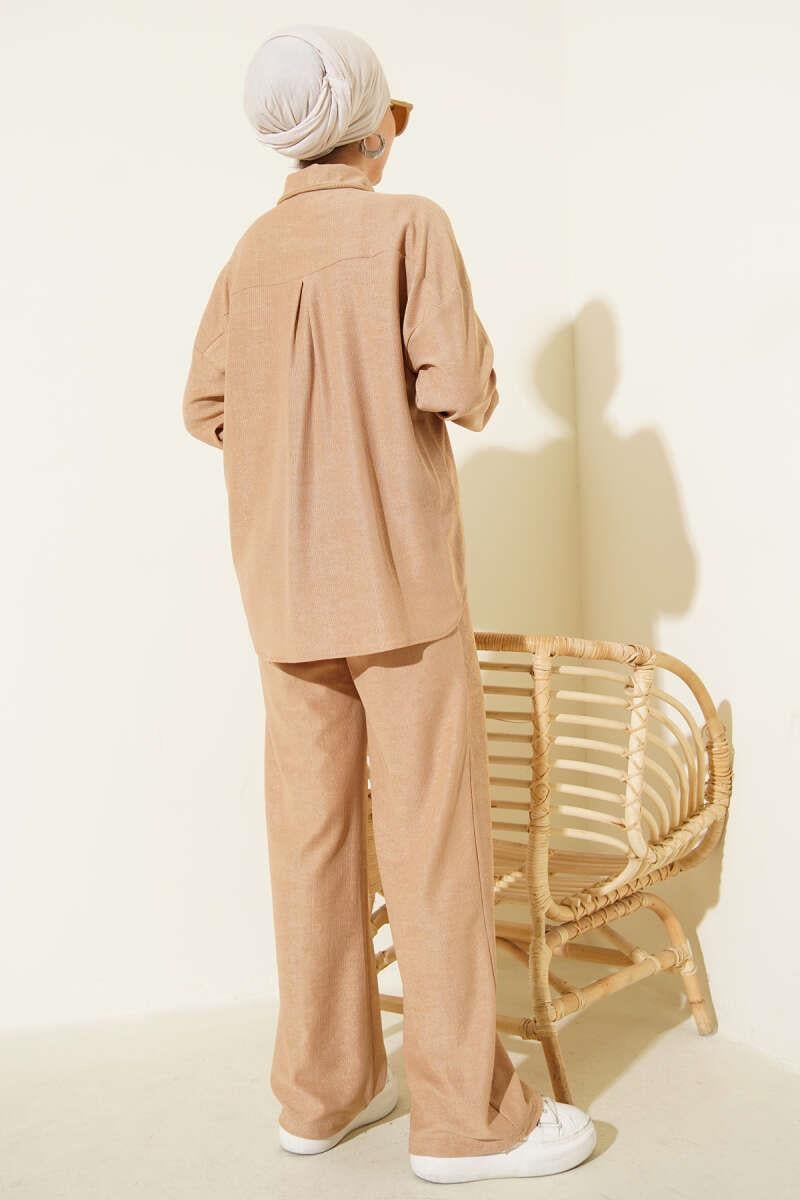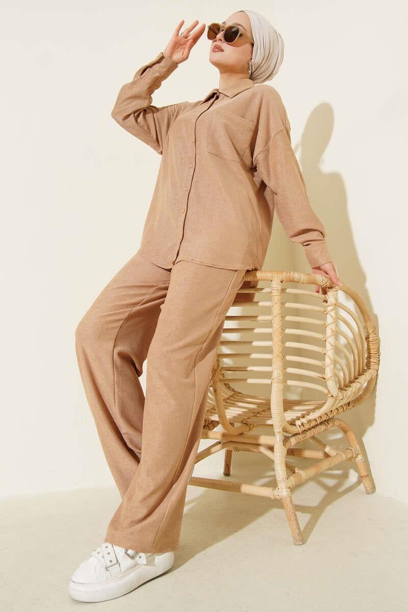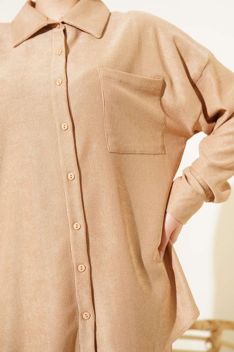 Thin Ribbed Pocket Shirt 2 Piece Set Latte (0314-1455-668897)