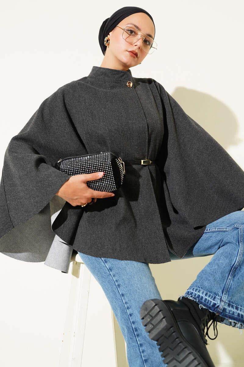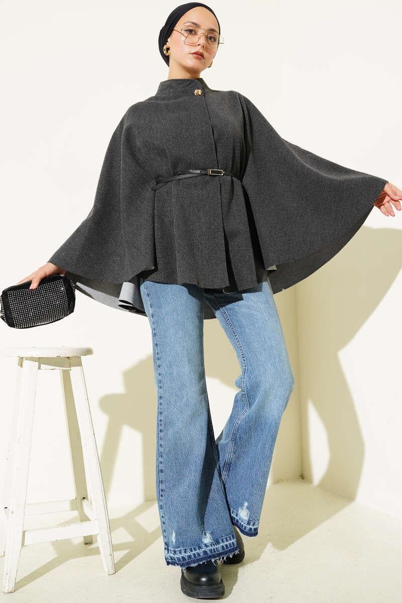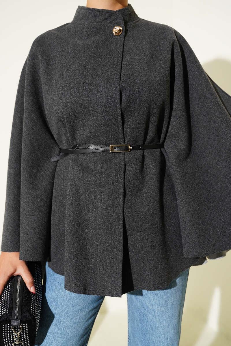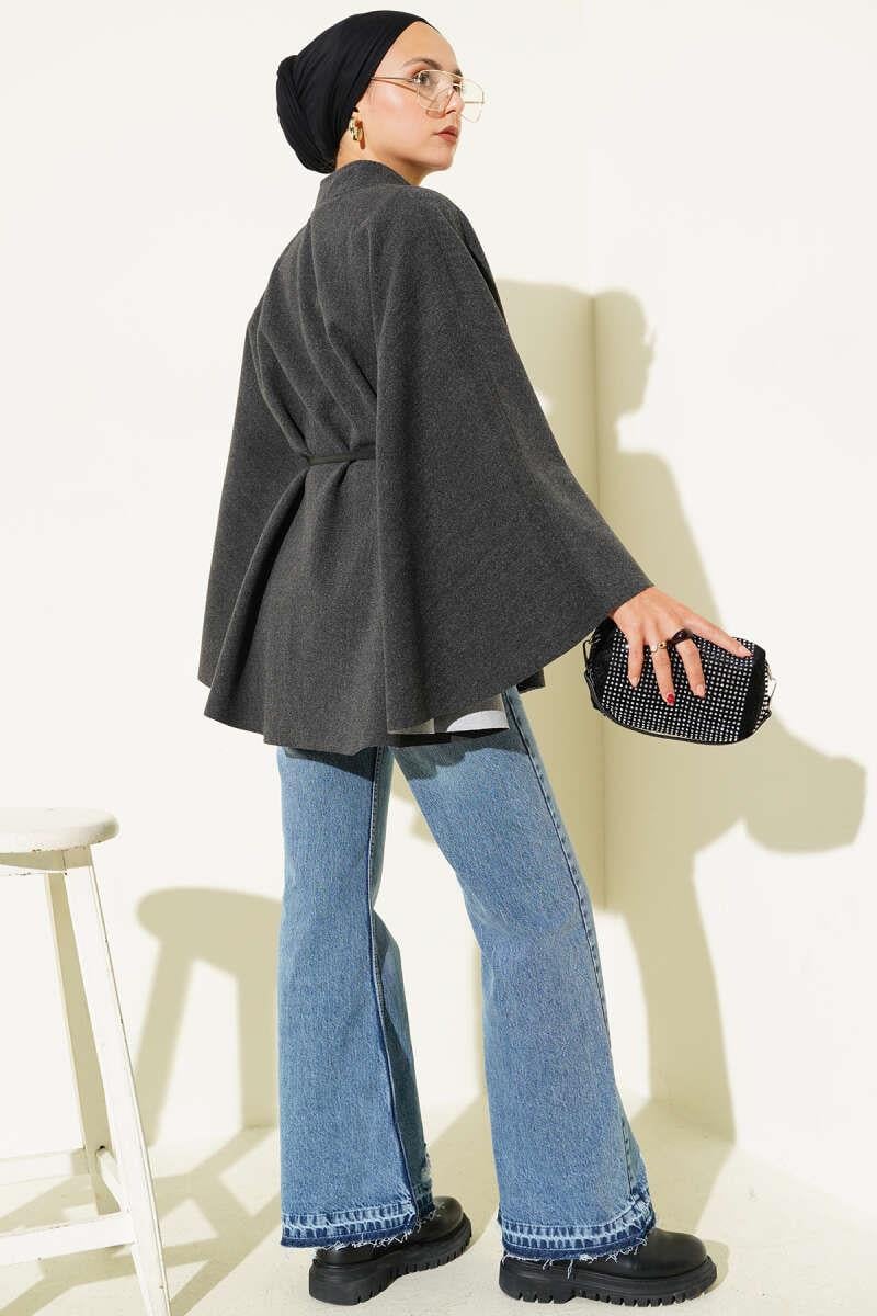 Thin Belt Detailed Cashmere Poncho Smoke (8900-25131-675278)