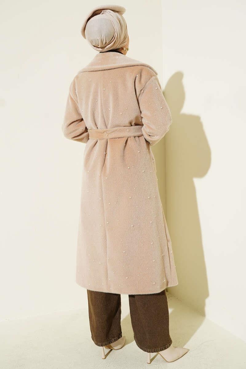 Pearl-Embellished Goldfox Coat Beige (0999-6504-681636)