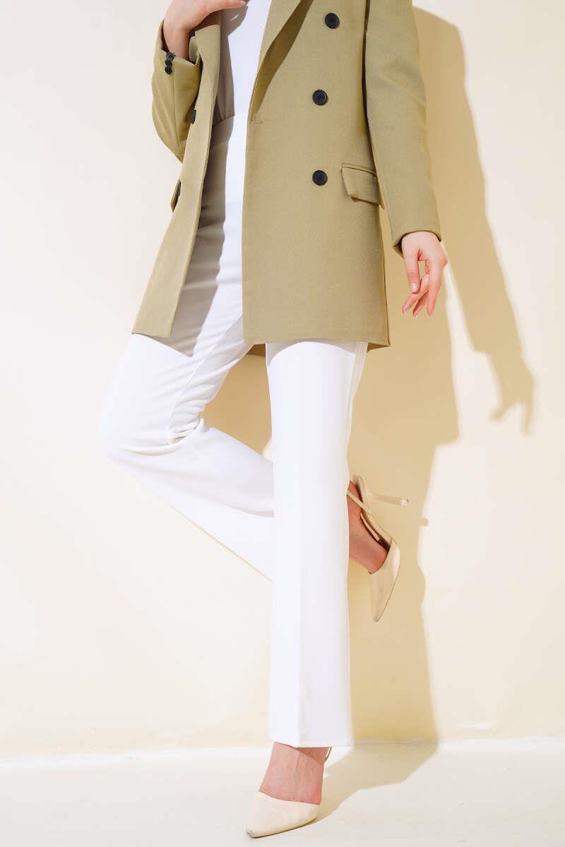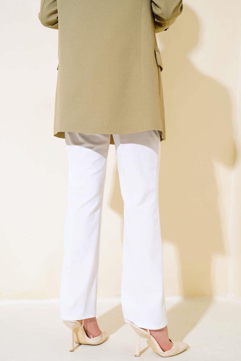 Bell-bottomed Elastic Waist Double Leg Trousers White (8141-1762-651844)
