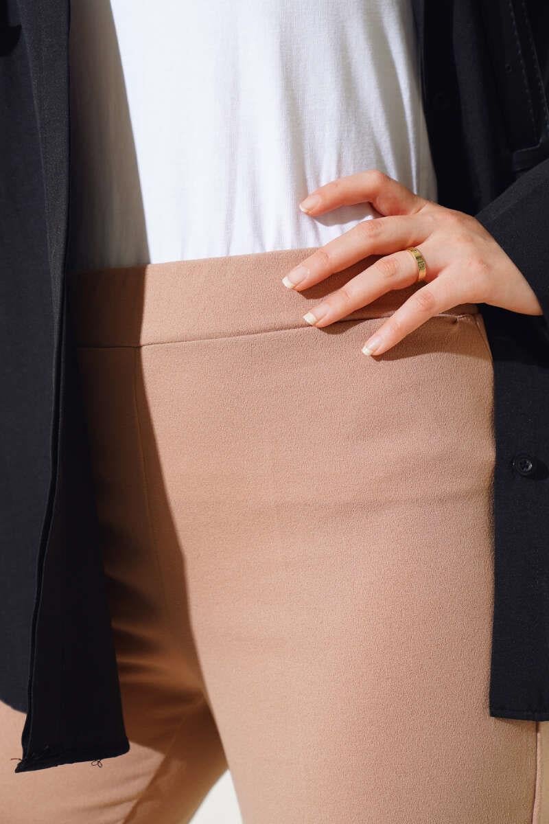 Camel Double Leg Trousers with Elastic Waistband (8141-1762-651850)