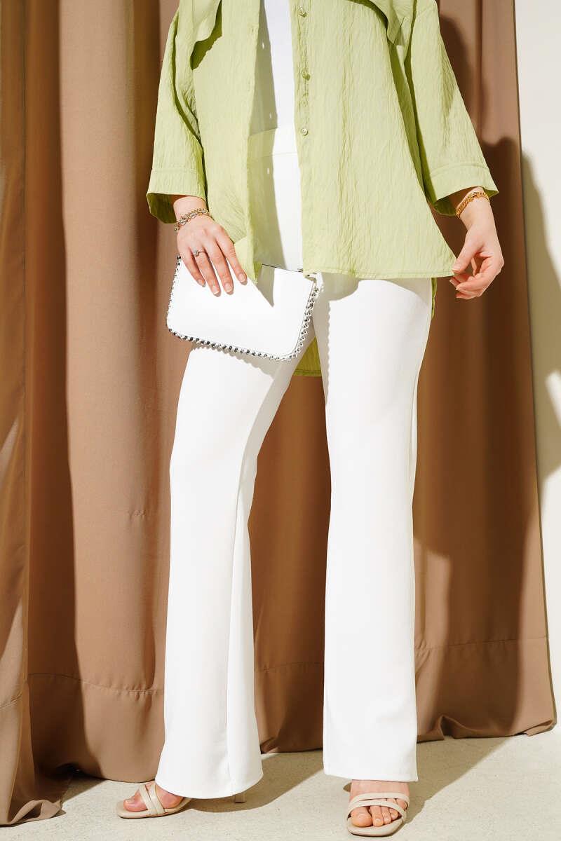 Bell-bottomed Elastic Waist Trousers White (0997-2703-630262)