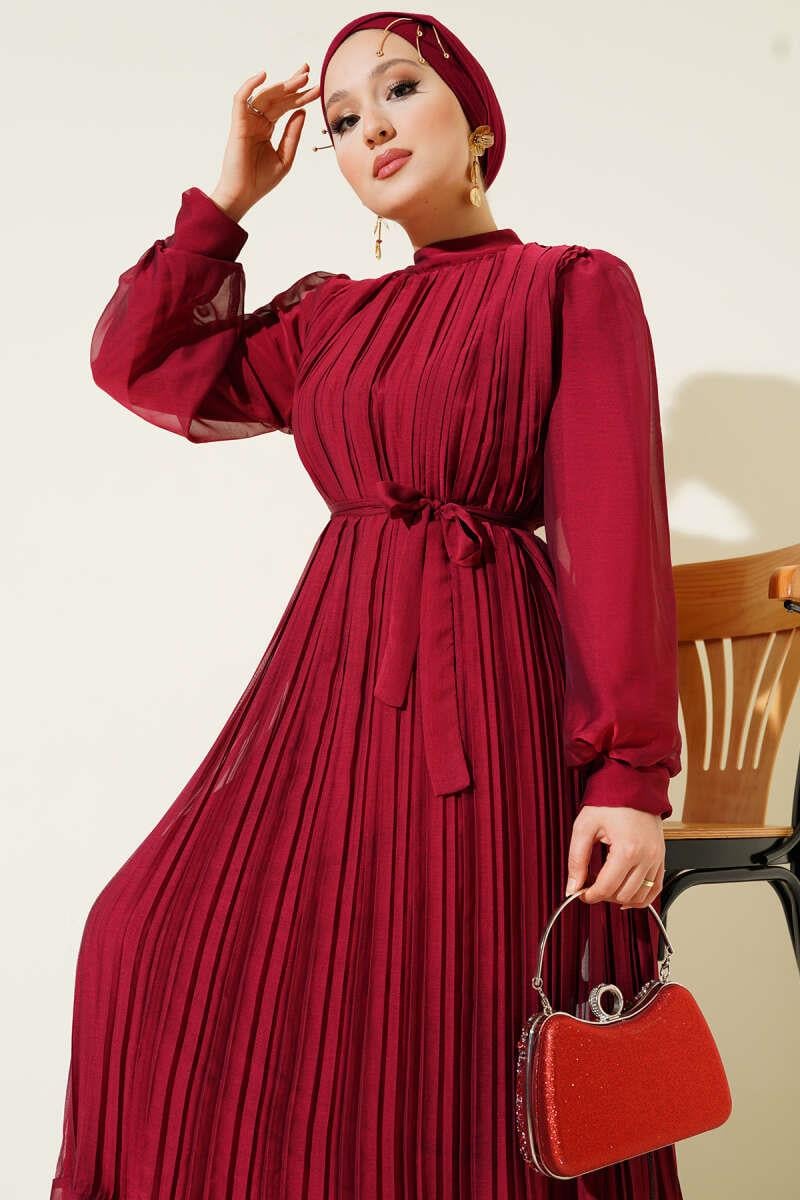Janjan Pleated Dress Burgundy (0569-1408-642182)