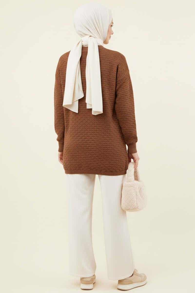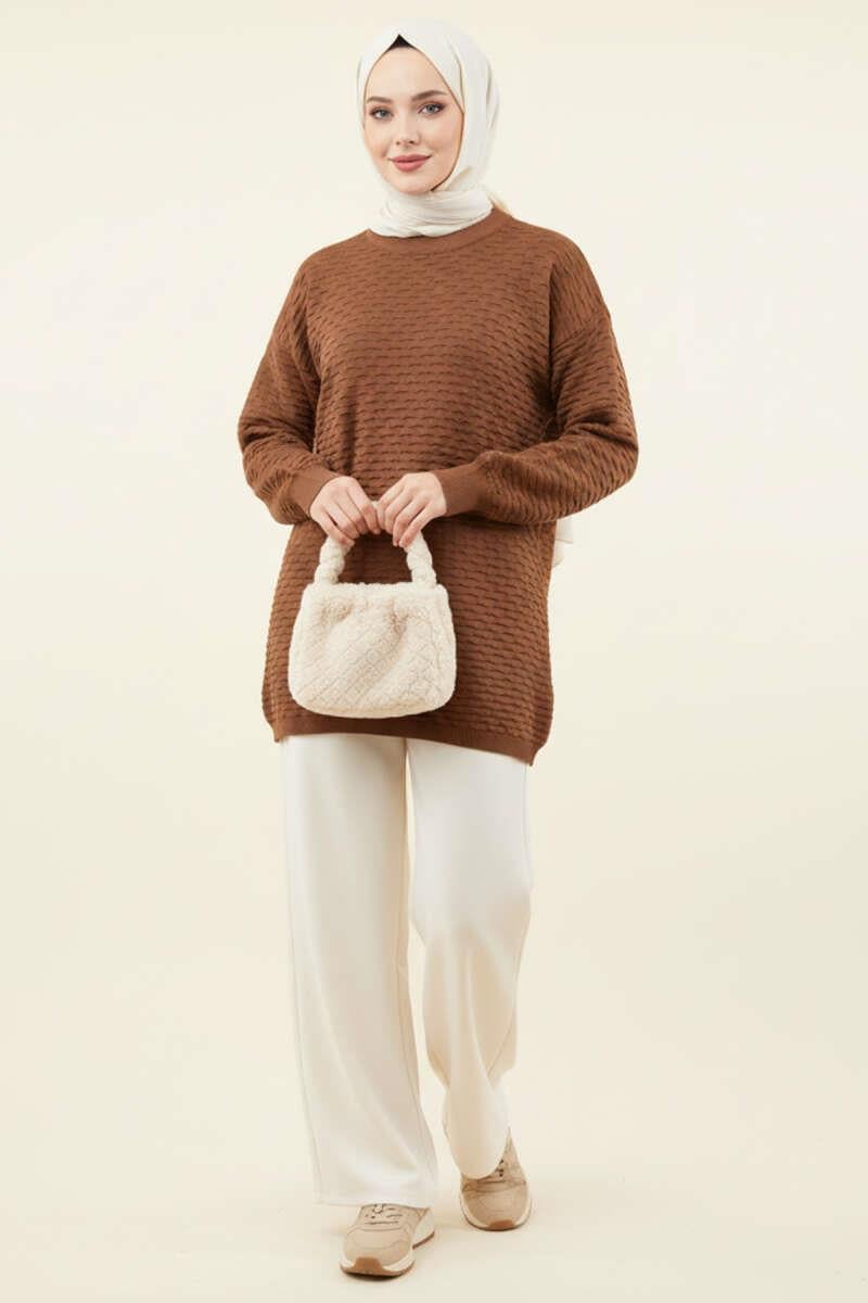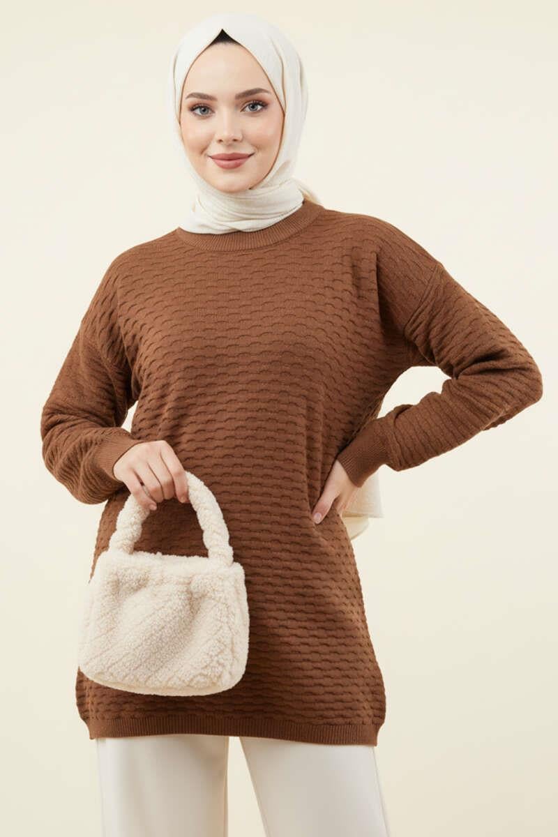 Embossed Patterned Knit Tunic Brown (8374-9732-683354)