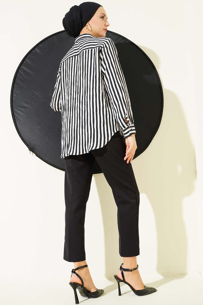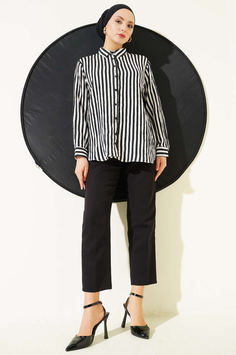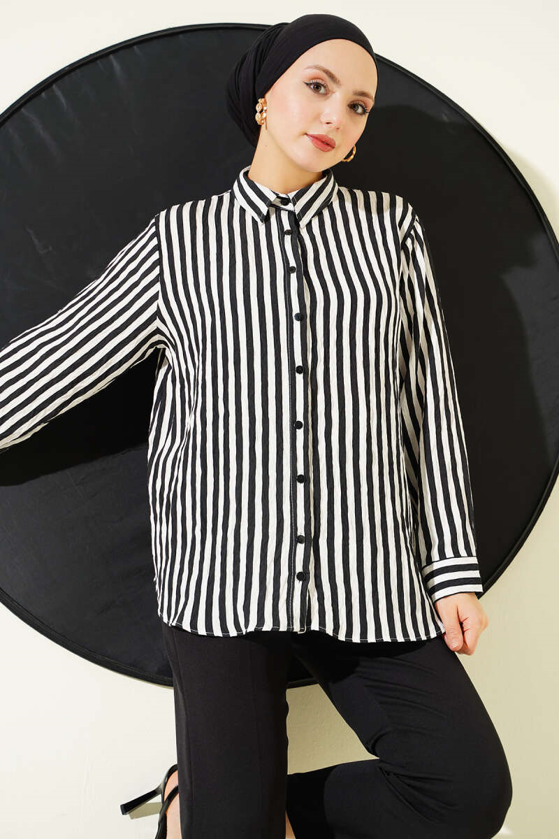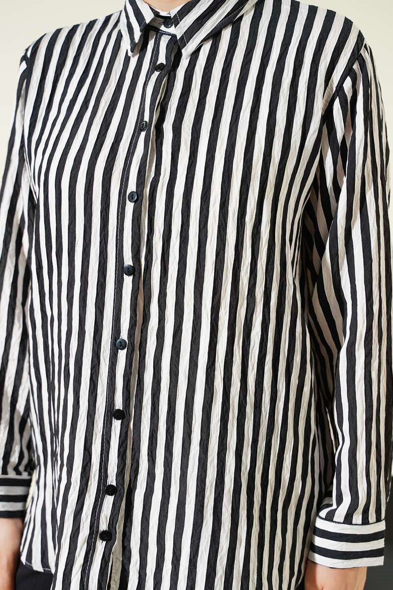Thick Vertical Striped Basic Shirt Black (0314-10897-727502)