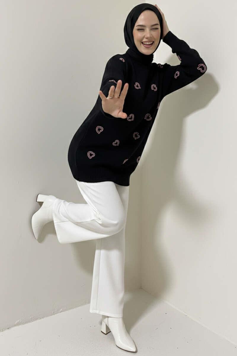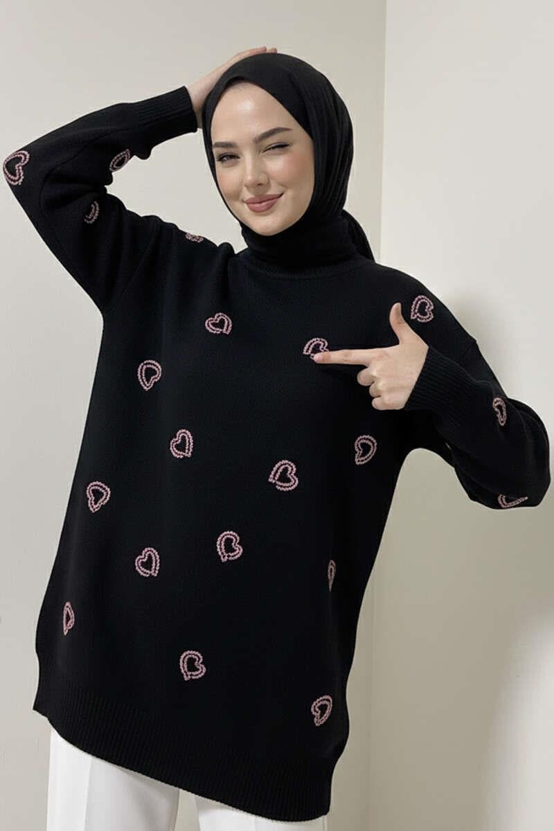Heart Embroidered Knitwear Sweater Black (6999-3254-677180)