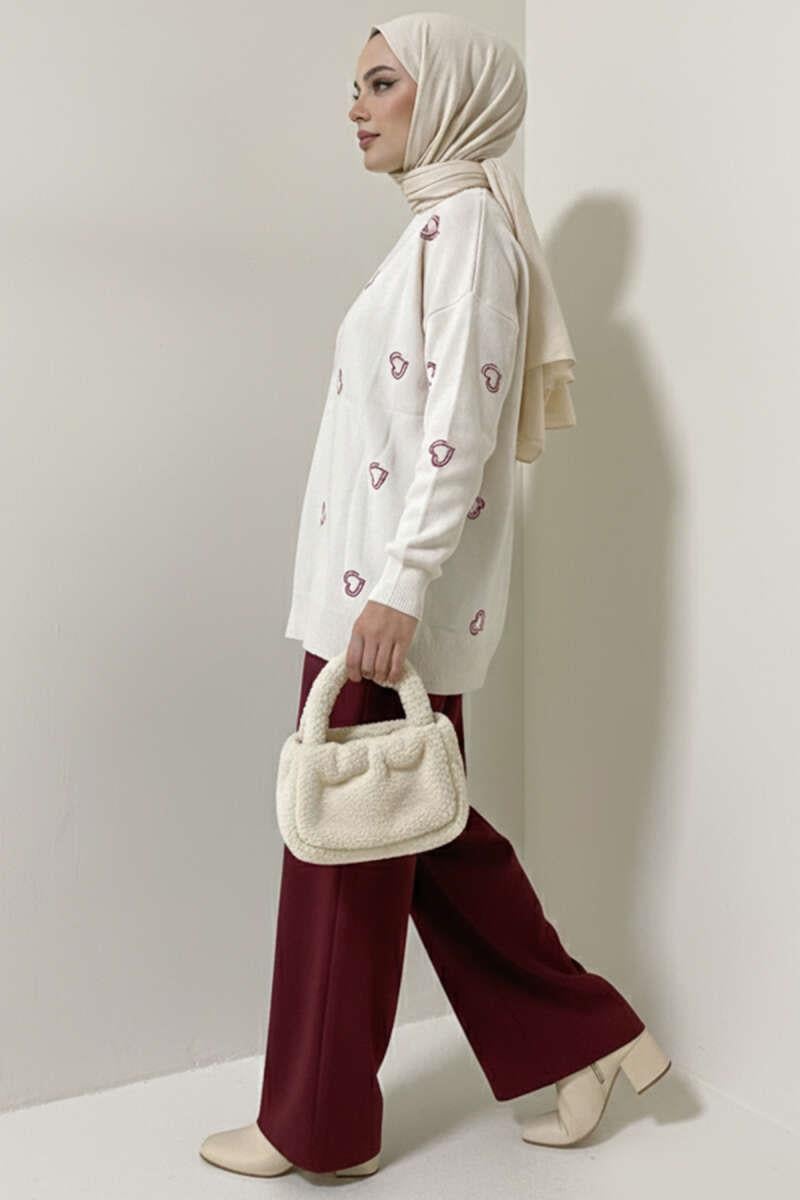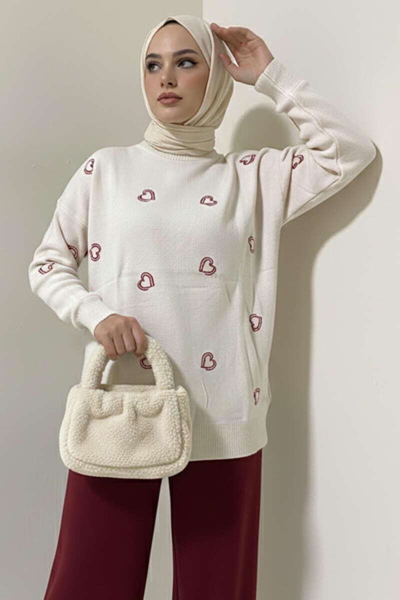 Heart Embroidered Knitwear Sweater Stone (6999-3254-677181)