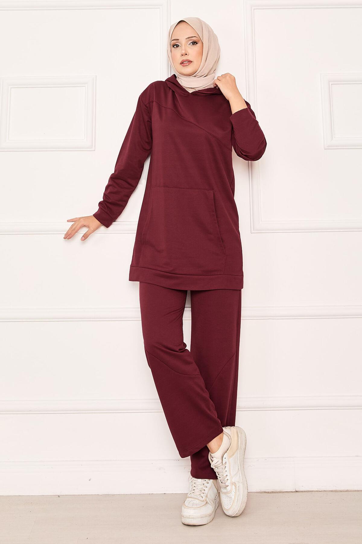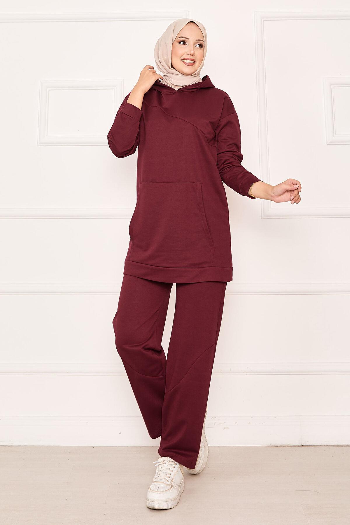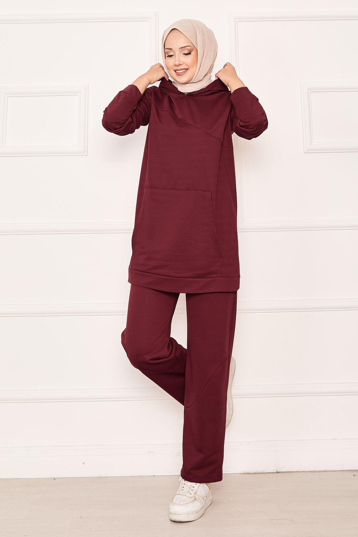Kangaroo Pocket and Hood Detailed 2 Piece Set, Claret Red (125M00616057R0838)