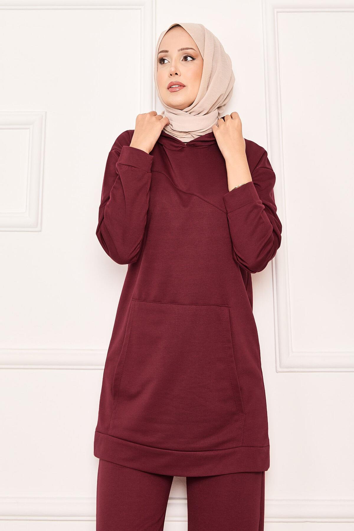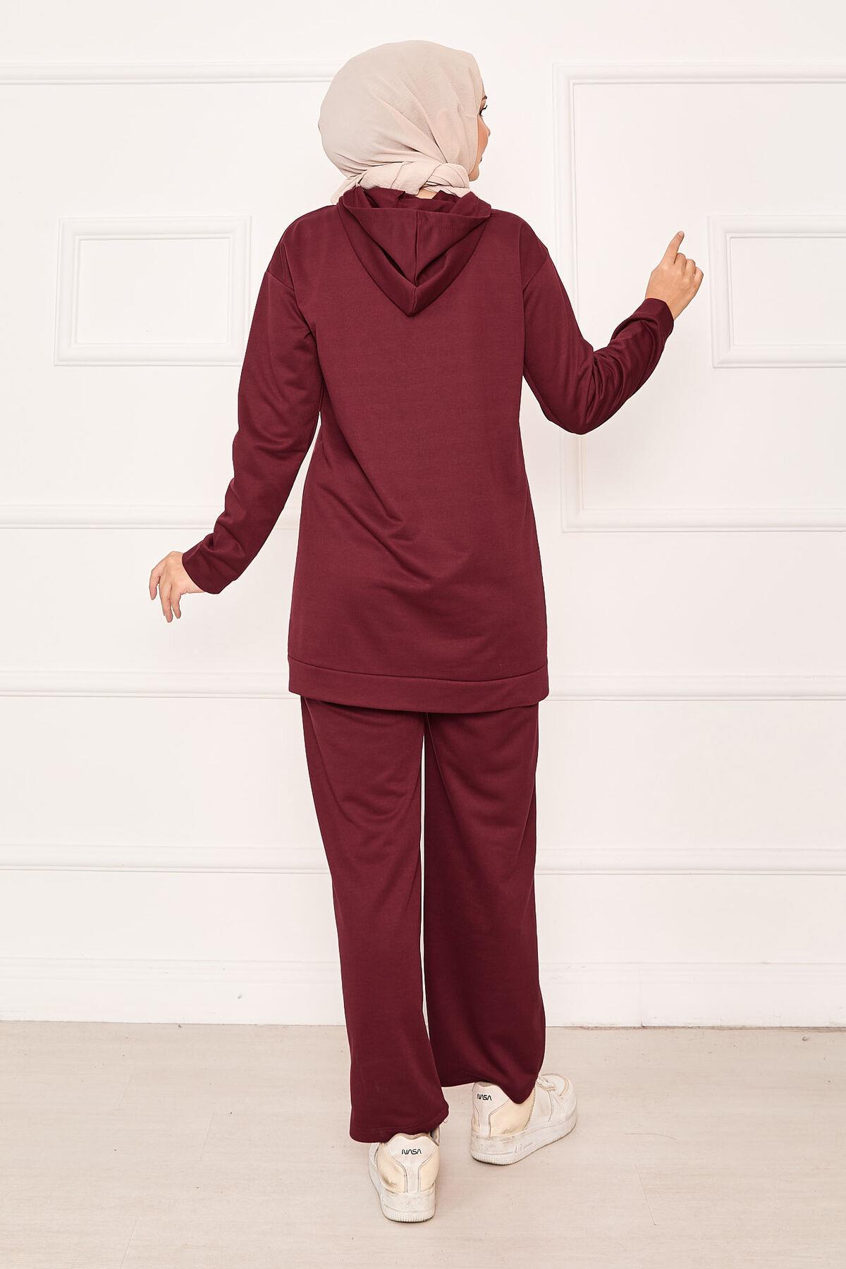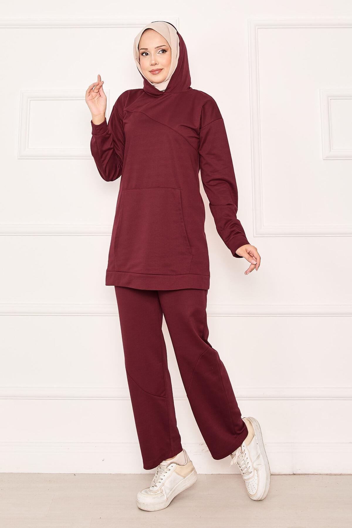 Kangaroo Pocket and Hood Detailed 2 Piece Set, Claret Red (125M00616057R0838)