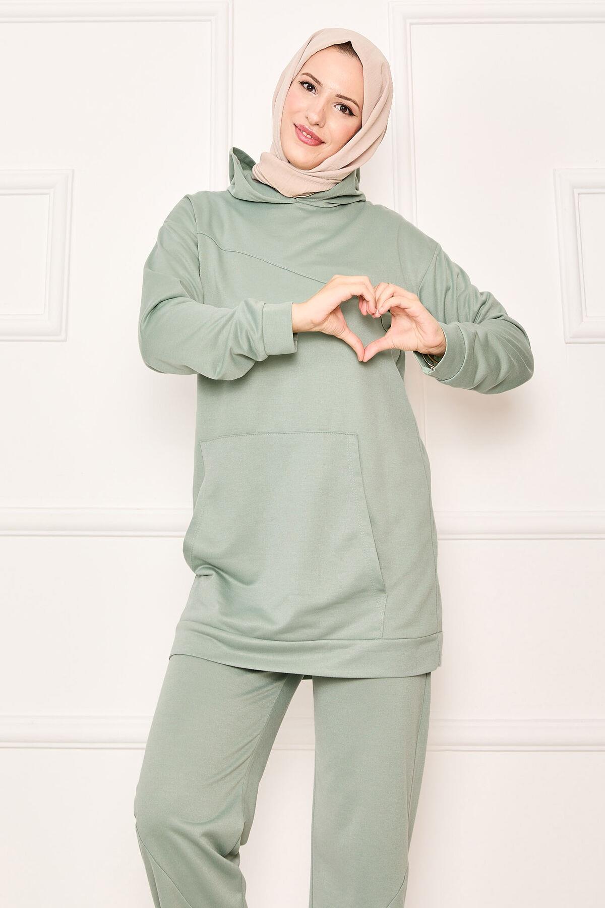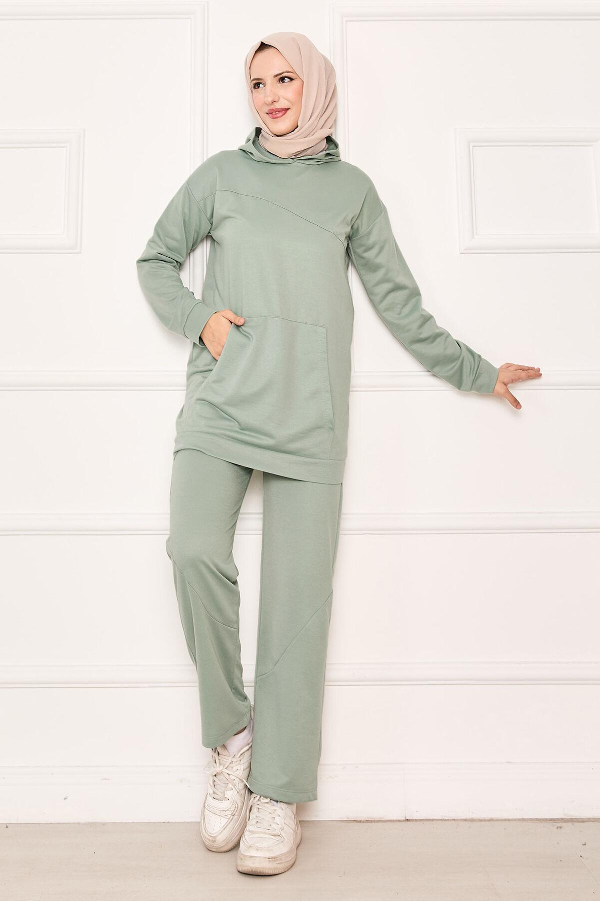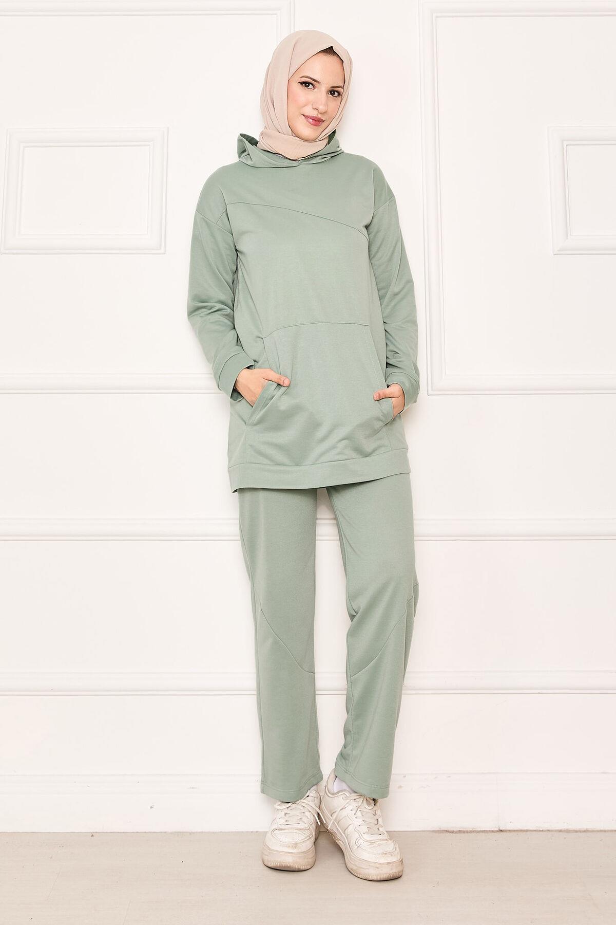Kangaroo Pocket and Hood Detailed 2 Piece Set Mint (125M00616057R4038)