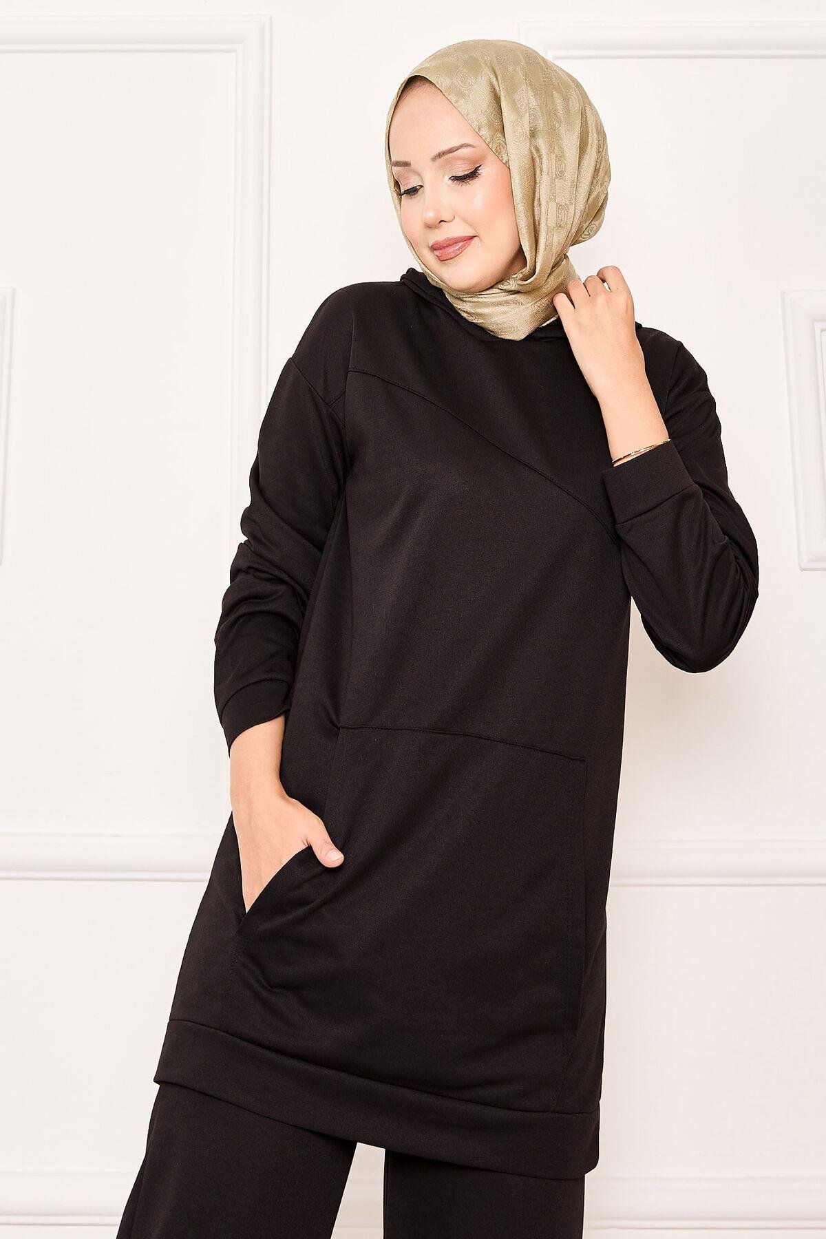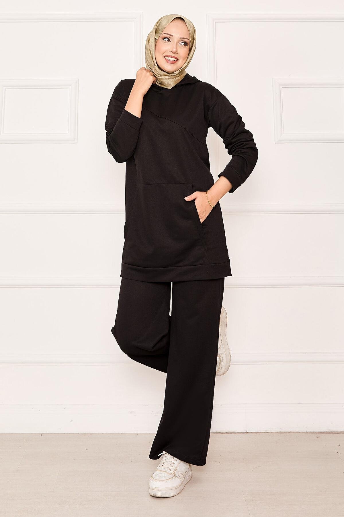 Kangaroo Pocket and Hood Detailed 2 Piece Set Black (125M00616057R5238)