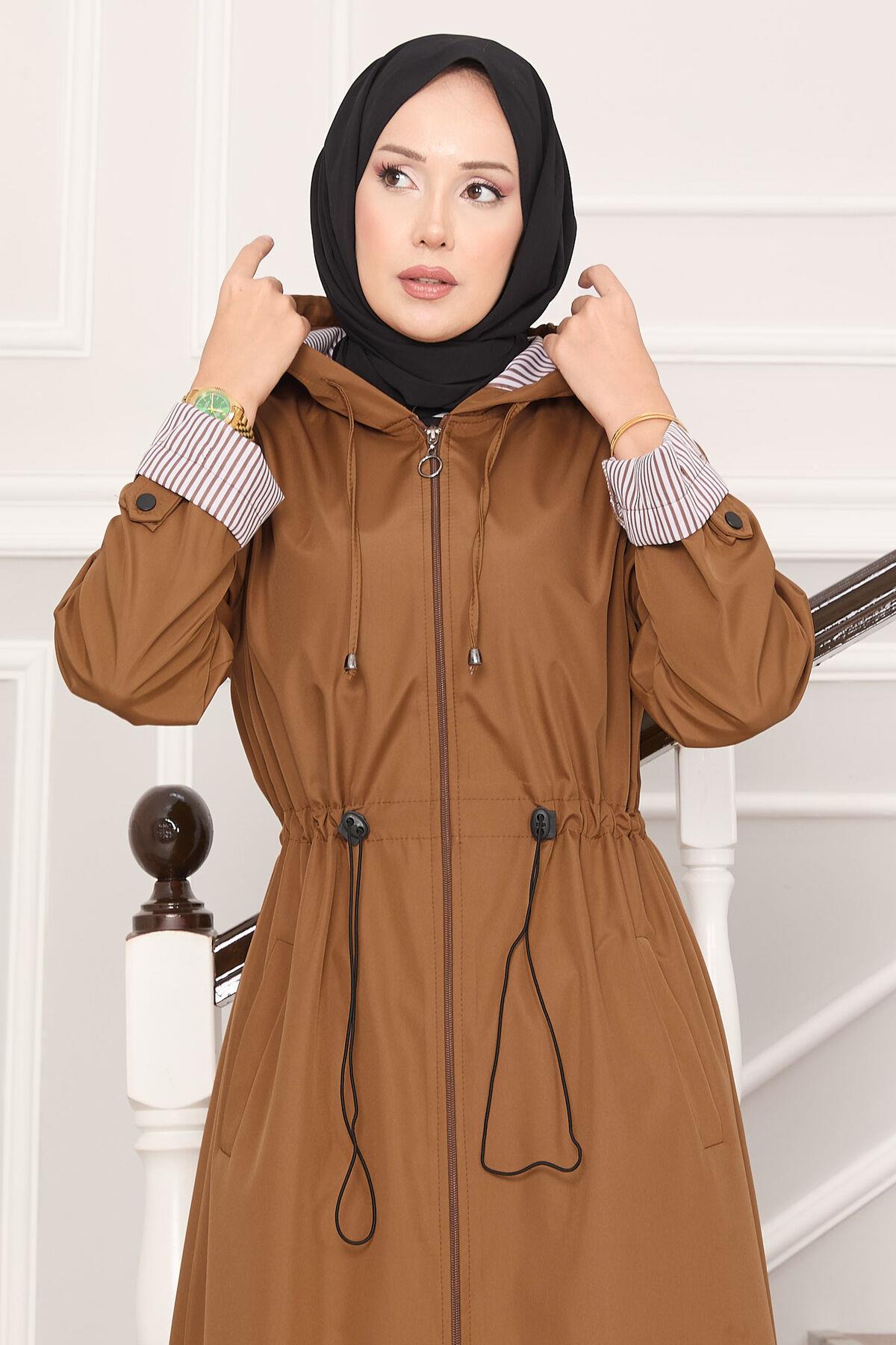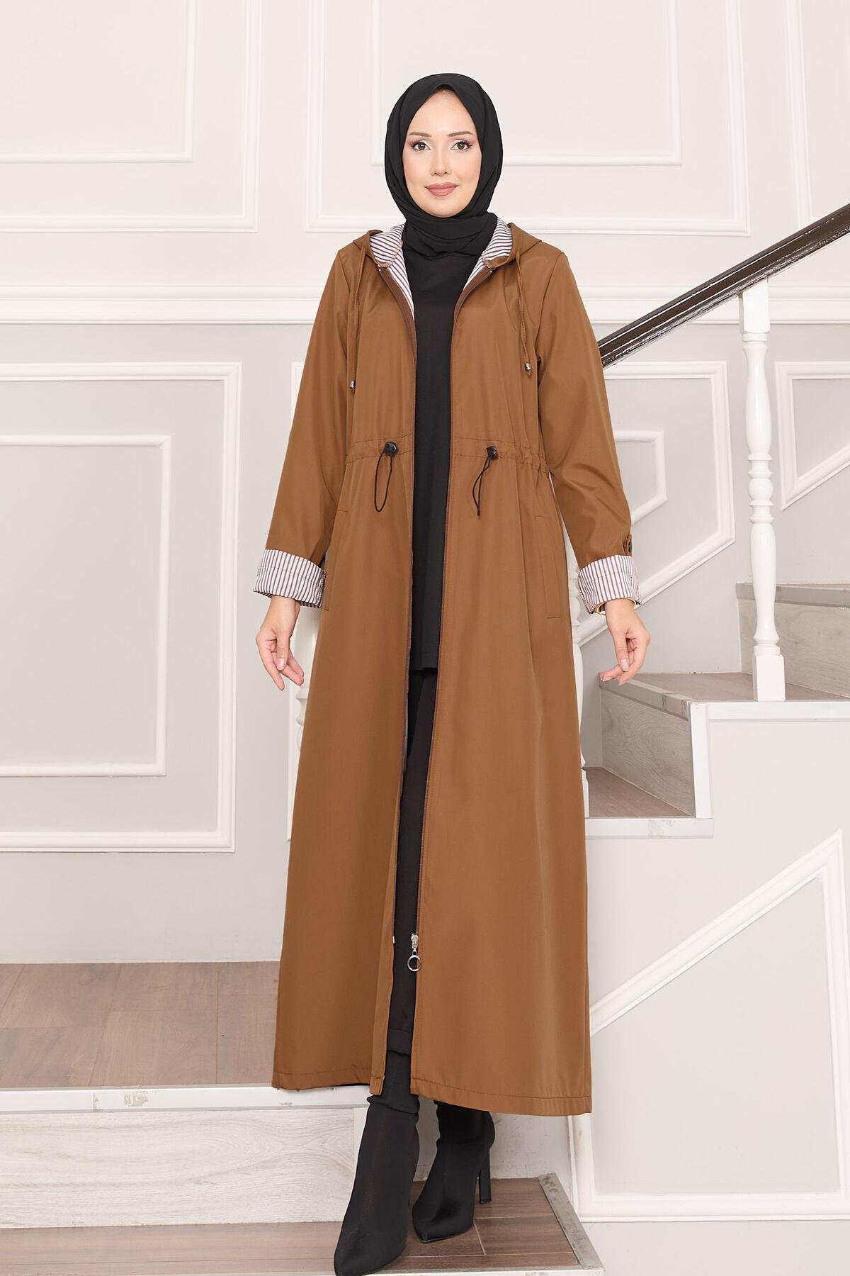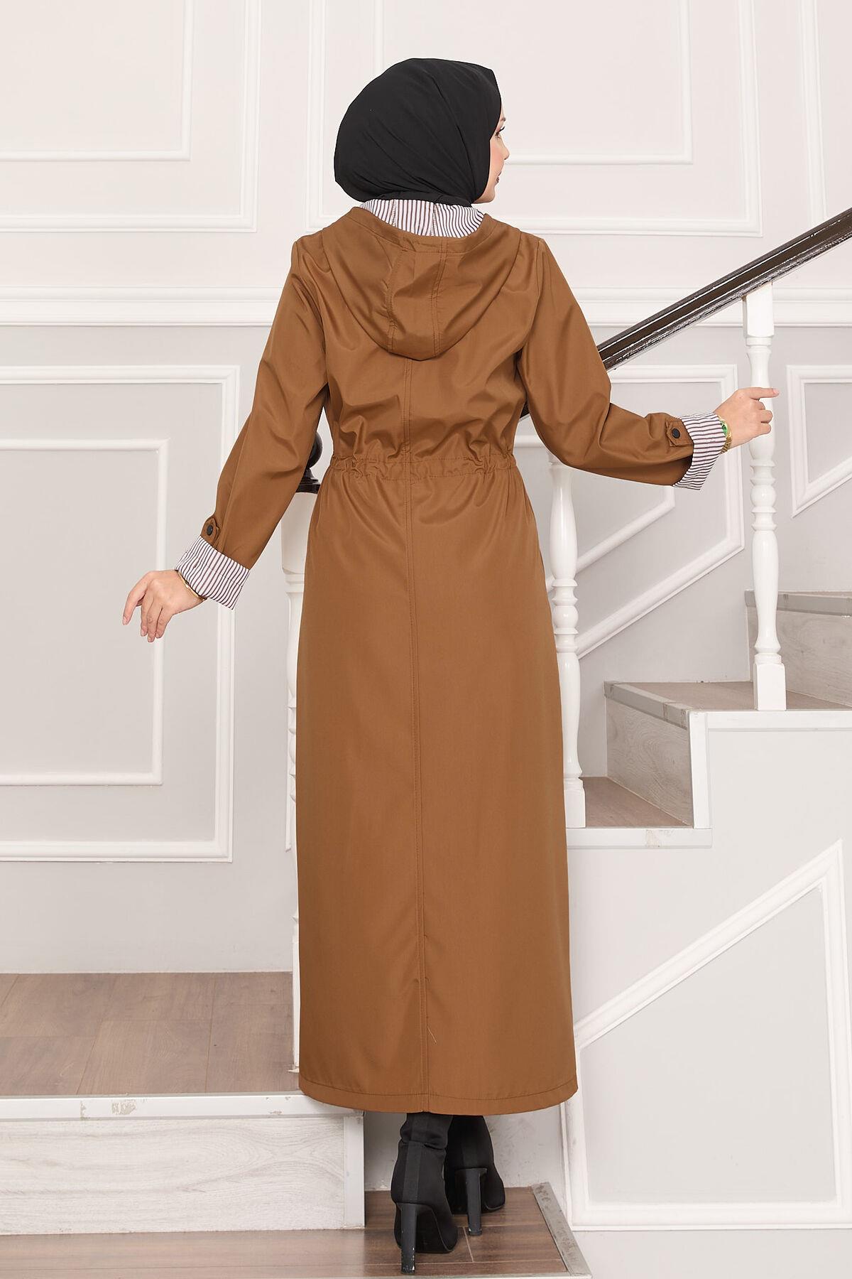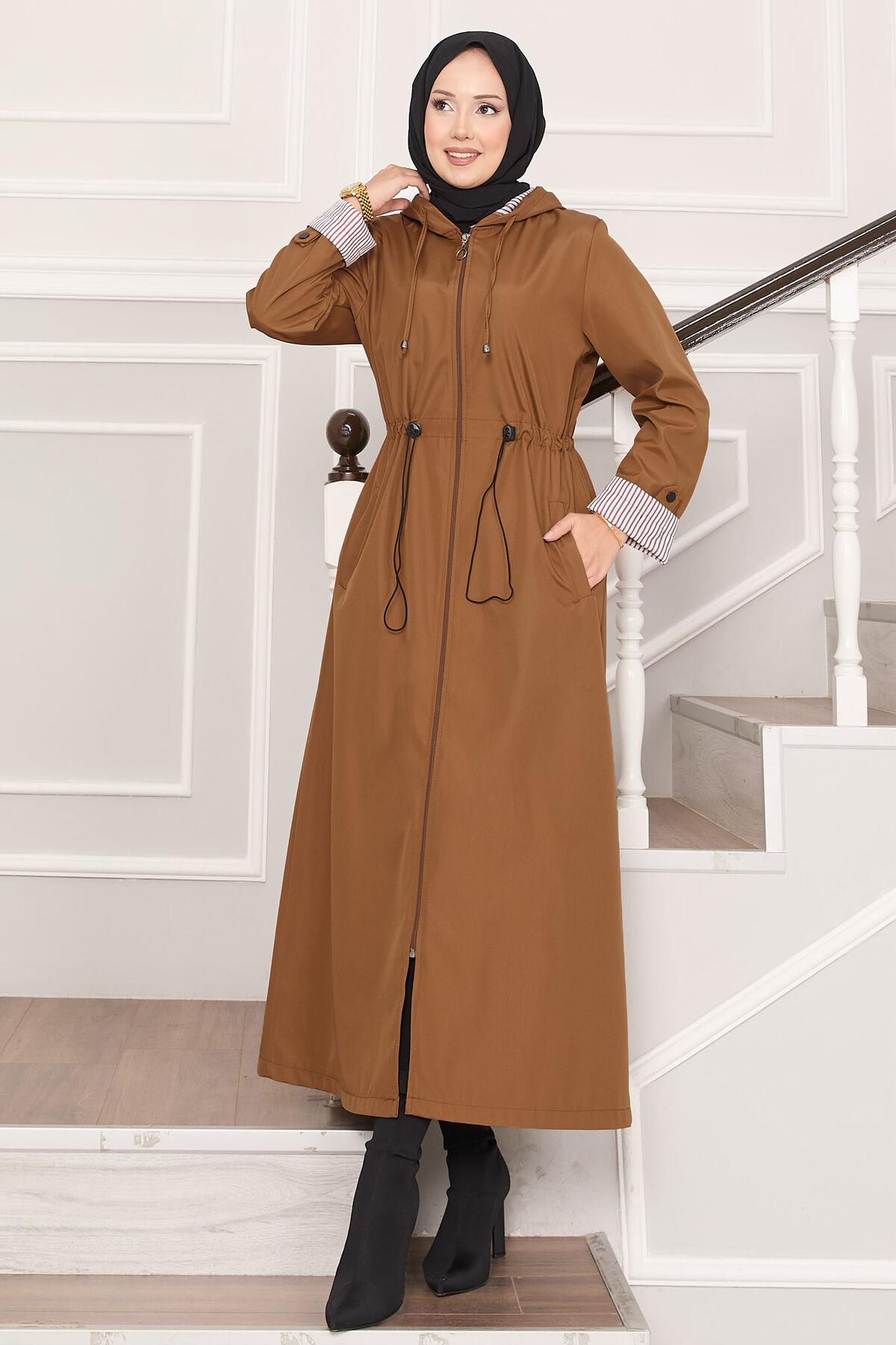 Hooded Adjustable Waist Large Long Trench Coat Tan (125M01913340R5842)