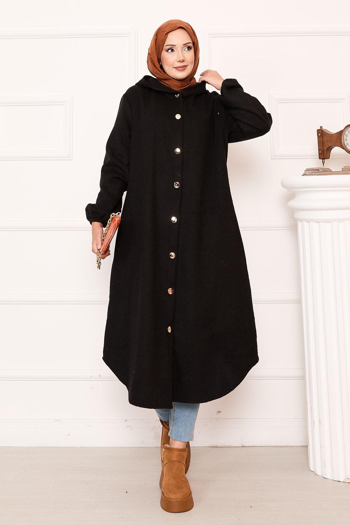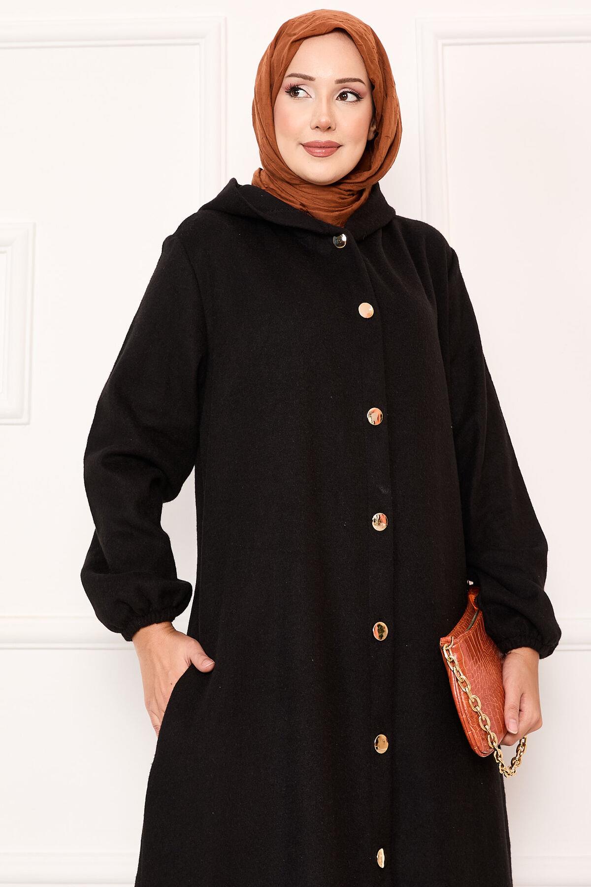 Hooded Button-Down Cashmere Coat Black (125M02310158R5248)