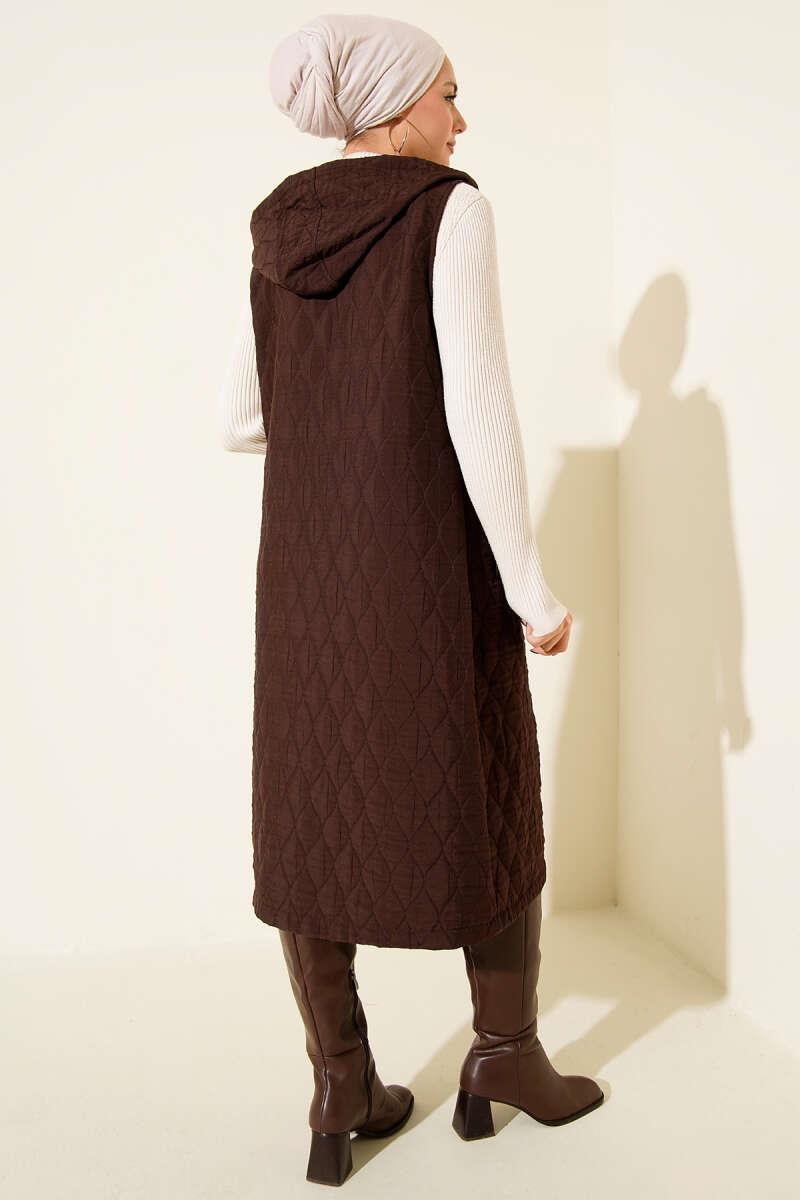 Hooded Button-Down Quilted Vest, Coffee (0569-3240-703681)