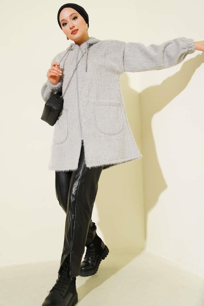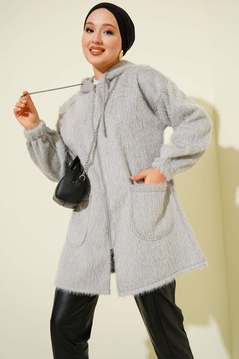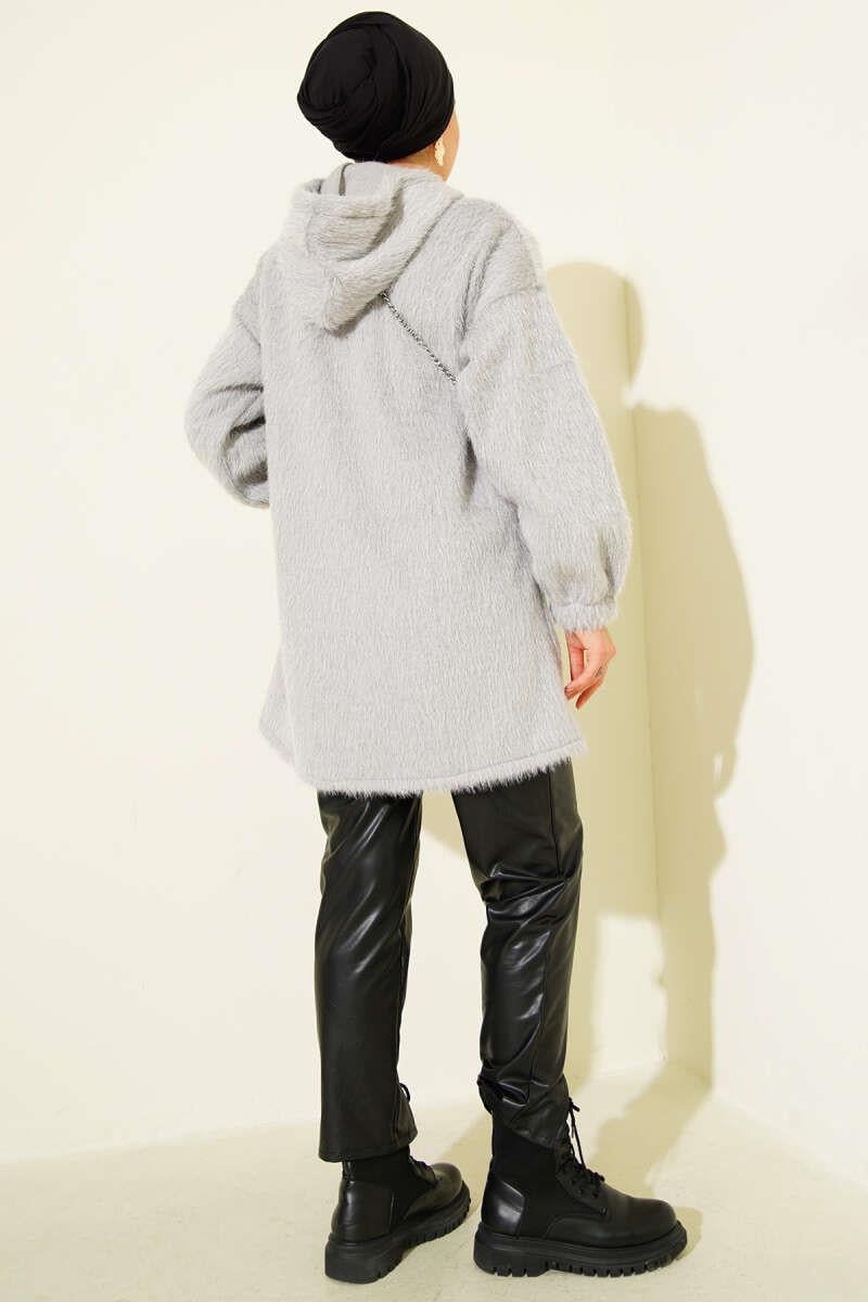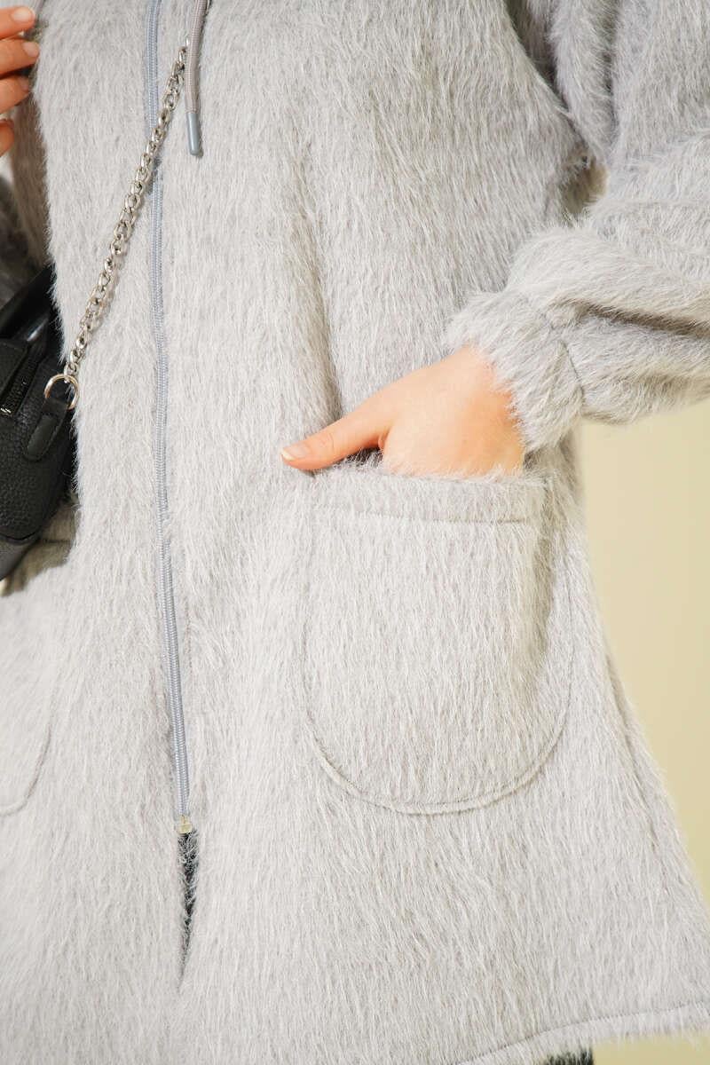 Hooded Zippered Pocket Cardigan Gray (8086-55006-675124)